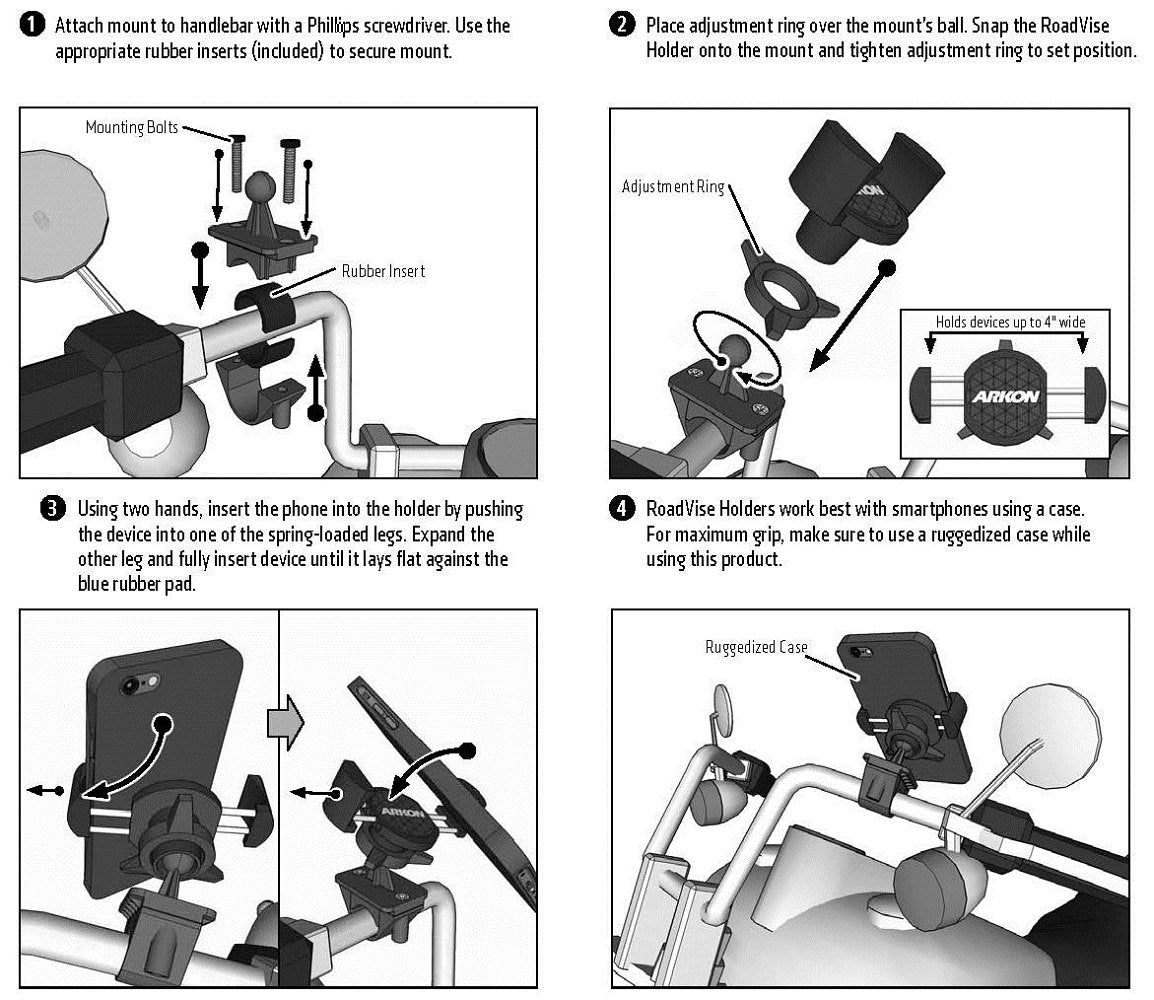 ARKON Mounts RoadVise Motorcycle Phone Mount for iPhone 7 6S Plus 6 Plus 7 6S 6 Galaxy Note 5 S7 S6