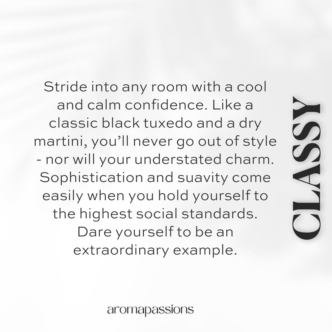 Our CLASSY formula for men perfume is beautifully crafted by expert perfumers and aromatherapist from around the world. Scented using Cardamom, Nutmeg, Saffron, Jasmine, Sandalwood, Vanilla, Orange Blossom Essential oils.
