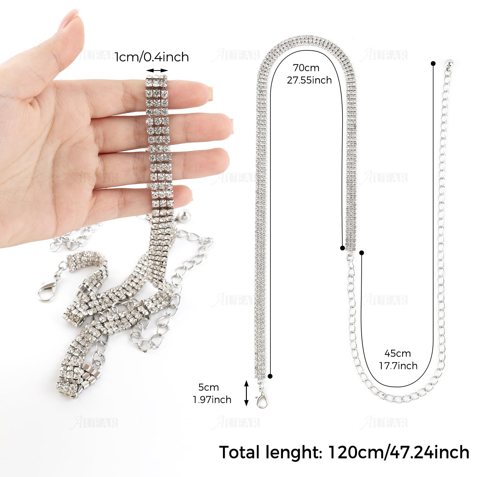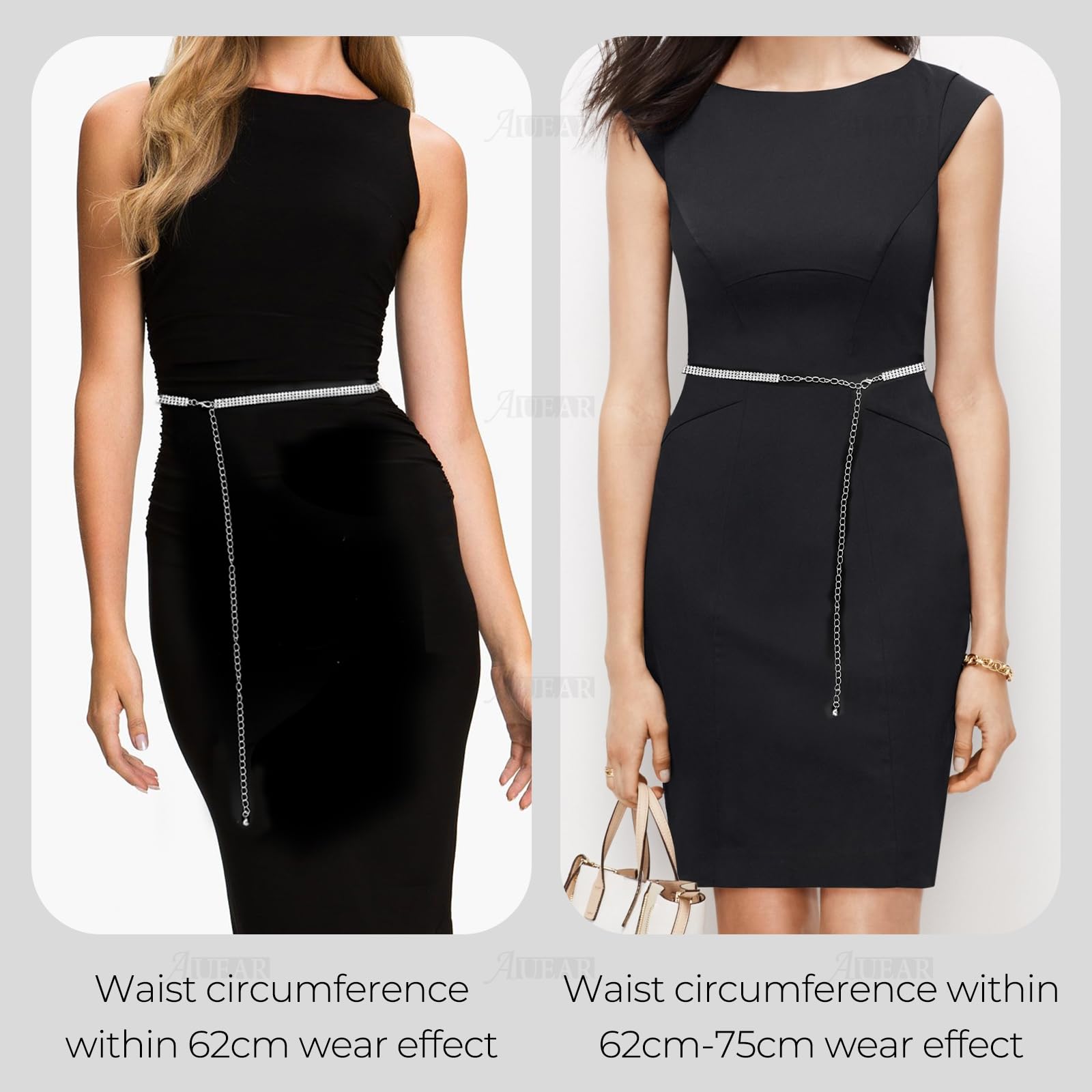 AUEAR, Fashion Silver Crystal Waist Buckle Belt Metal Chain Dress Rhinestone for Women Wedding Party Decor
