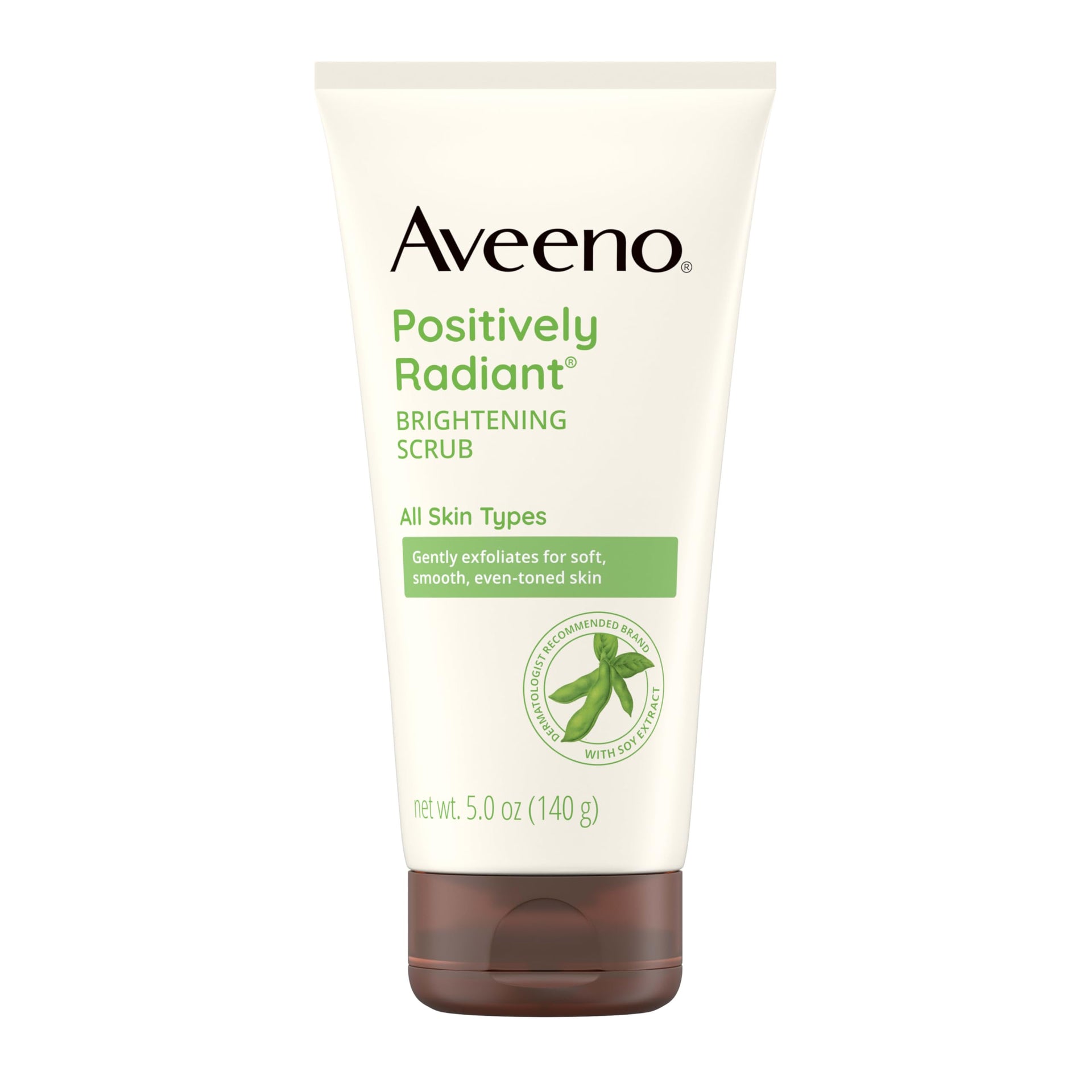 Aveeno Positively Radiant Exfoliating Face Scrub is a gentle daily facial scrub and brightening face wash that buffs away surface impurities, dead skin, & excess oil to help improve skin’s tone & texture & reveals radiant-looking skin. This oil and soap free face scrub harnesses moisture-rich soy extract and naturally derived granules to cleanse pores, lift away dirt and oil, and help remove dull, dry flakes without stripping skin’s natural moisture barrier. Formulated with antioxidant-rich soy proteins, lipids, and carbohydrates, it helps improve tone & texture while revealing healthy-looking glow & delivering soothing hydration. The hypoallergenic, non-comedogenic formula is free of parabens, phthalates, sulfates, and dyes and is gentle enough for sensitive skin and for everyday use within your skincare routine. From a dermatologist-recommended skin care brand, this 5-ounce tube leaves skin feeling silky after just one day of use and continues to reveal radiant-looking skin with consistent care. Use this exfoliating face scrub to refresh skin in the morning or evening: moisten face, gently massage in circular motions with light pressure, rinse thoroughly, and pat dry. For best results, adjust frequency based on your skin’s needs, use 2-3 times per week or as needed to avoid over-exfoliation, especially if you are new to exfoliating products. Avoid contact with eye area; rinse thoroughly if contact occurs.
