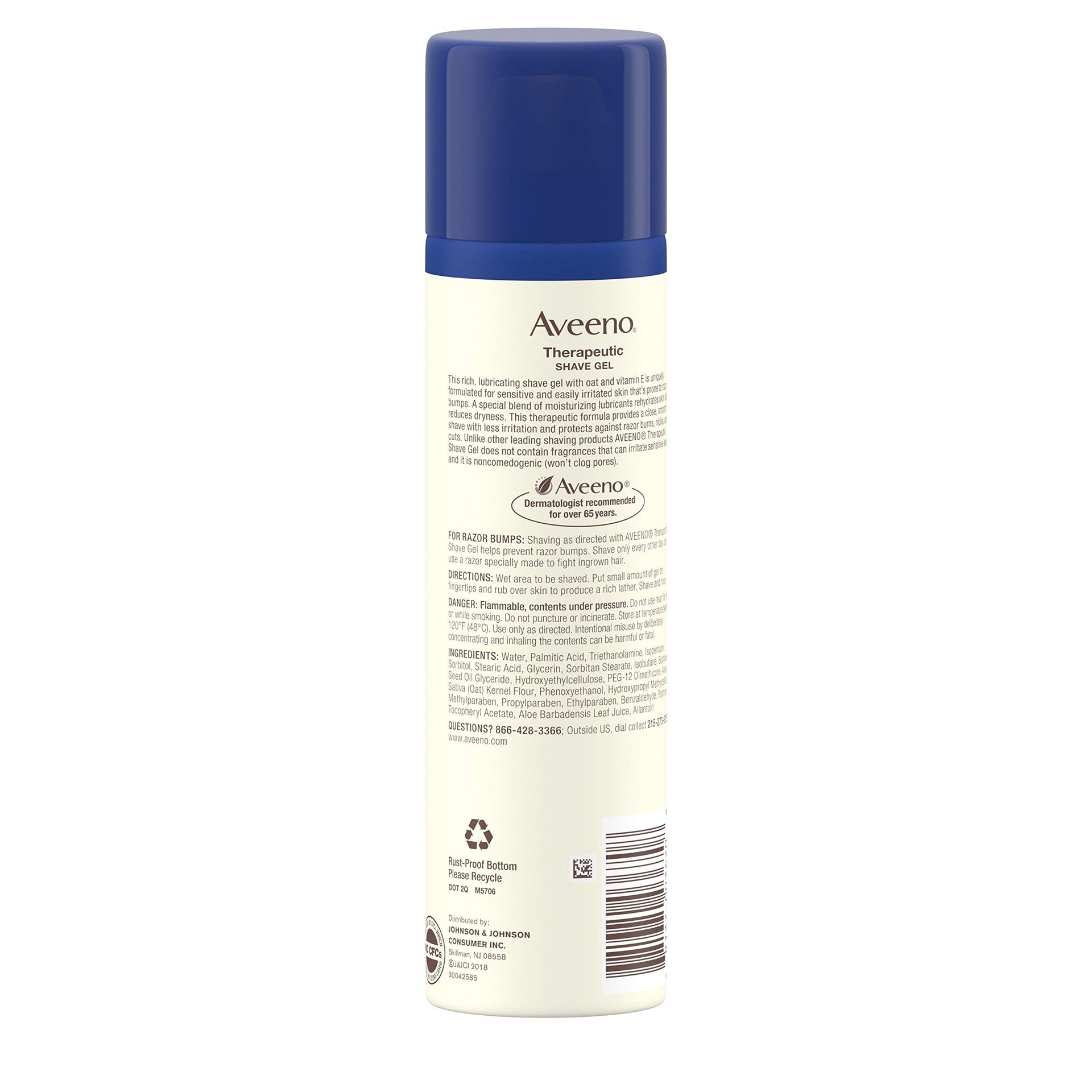Aveeno Therapeutic Shave Gel with Oat & Vitamin E | Prevents Razor Bumps, Soothes Dry Sensitive Skin | Fragrance-Free, 7 oz