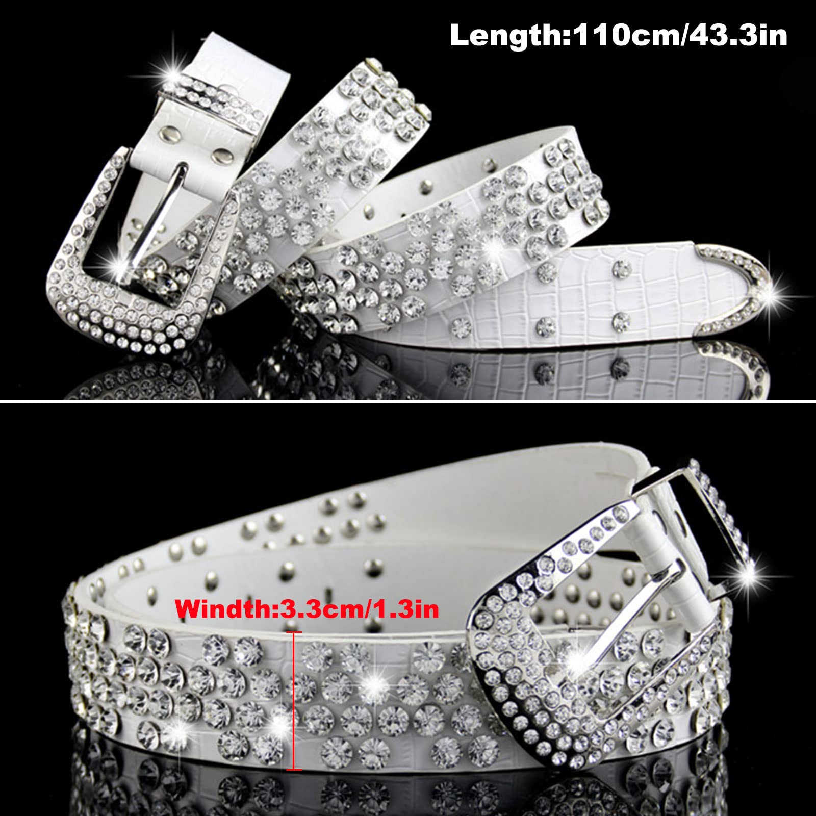 • 💘【Eye-catching Bling】This belt is full of sparkling rhinestones, very dazzling. We have also specially lengthened the bedding area of rhinestones, so that when the belt is worn, the position without rhinestones will not be exposed, which improves the delicacy of the whole belt. Wearing it, no matter women or men, can add more fashion and charm to you.