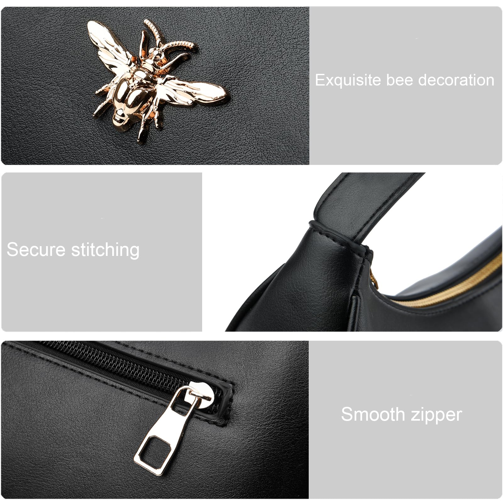 - MATERIAL: High quality soft Vegan Leather fabric and polyester lined make the hand feel more comfortable, smooth metal zipper and durable gold hardware make the shouler purse and handbag more elegant and durable.