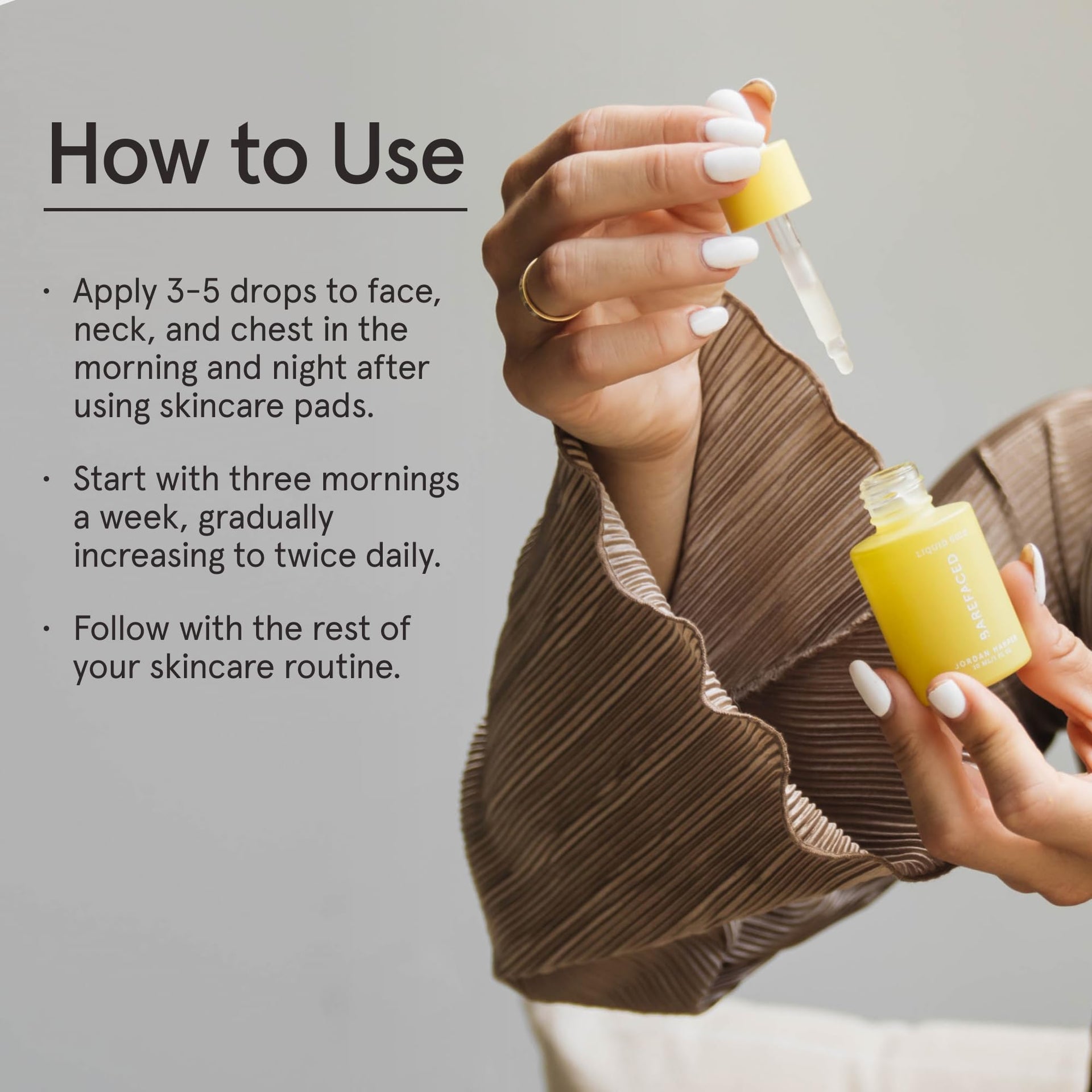 Meet Liquid Gold, more than just your average vitamin C serum-it's a multitasking antioxidant powerhouse. Formulated with pro-collagen ingredients, it defends against damaging environmental stressors, and minimizes the appearance of premature fine lines and wrinkles. Designed to layer perfectly on top of our Toning Pads for increased efficacy. Unlike traditional water-based options, Liquid Gold is a micro-emulsion with coconut esters for a rich and hydrating feel. All in all, it's like a daily multivitamin for your skin.