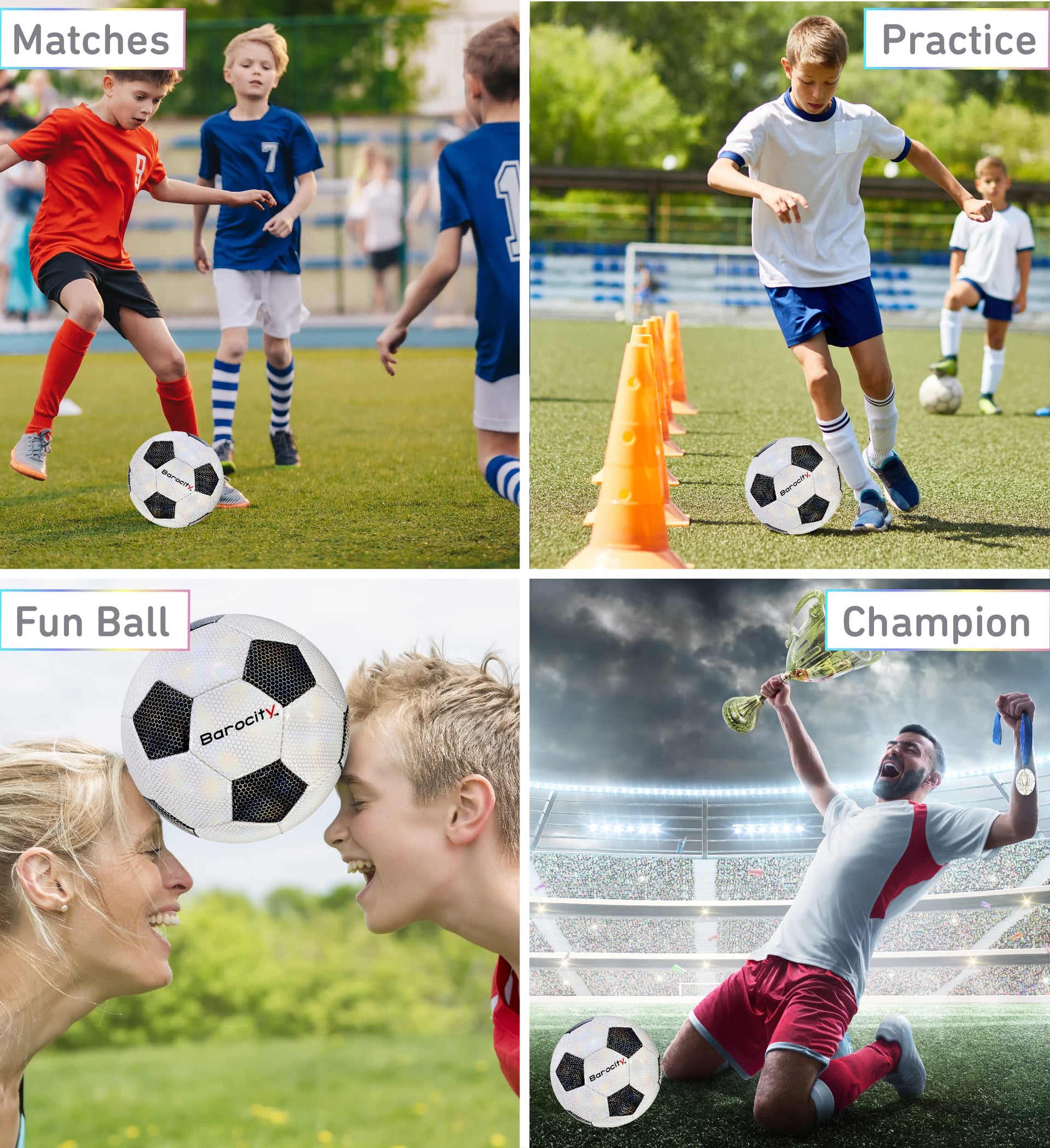 Barocity Classic Black & White Soccer Ball, Size 4, Rainbow Pattern