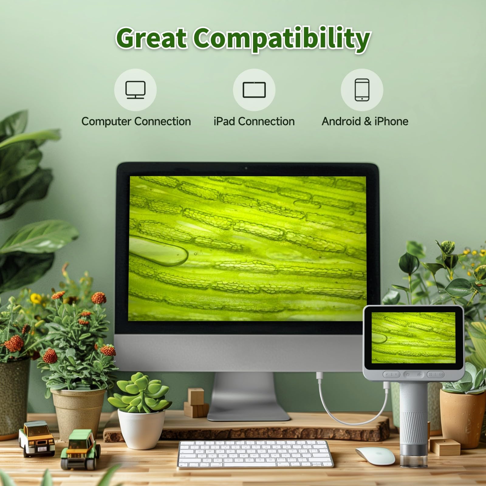 BEAVERLAB Finder Digital Microscope with 4 Inch Screen, 1080P HD 1600X Kids Portable Handheld Microscope with 8G Card for Scientific Experiment