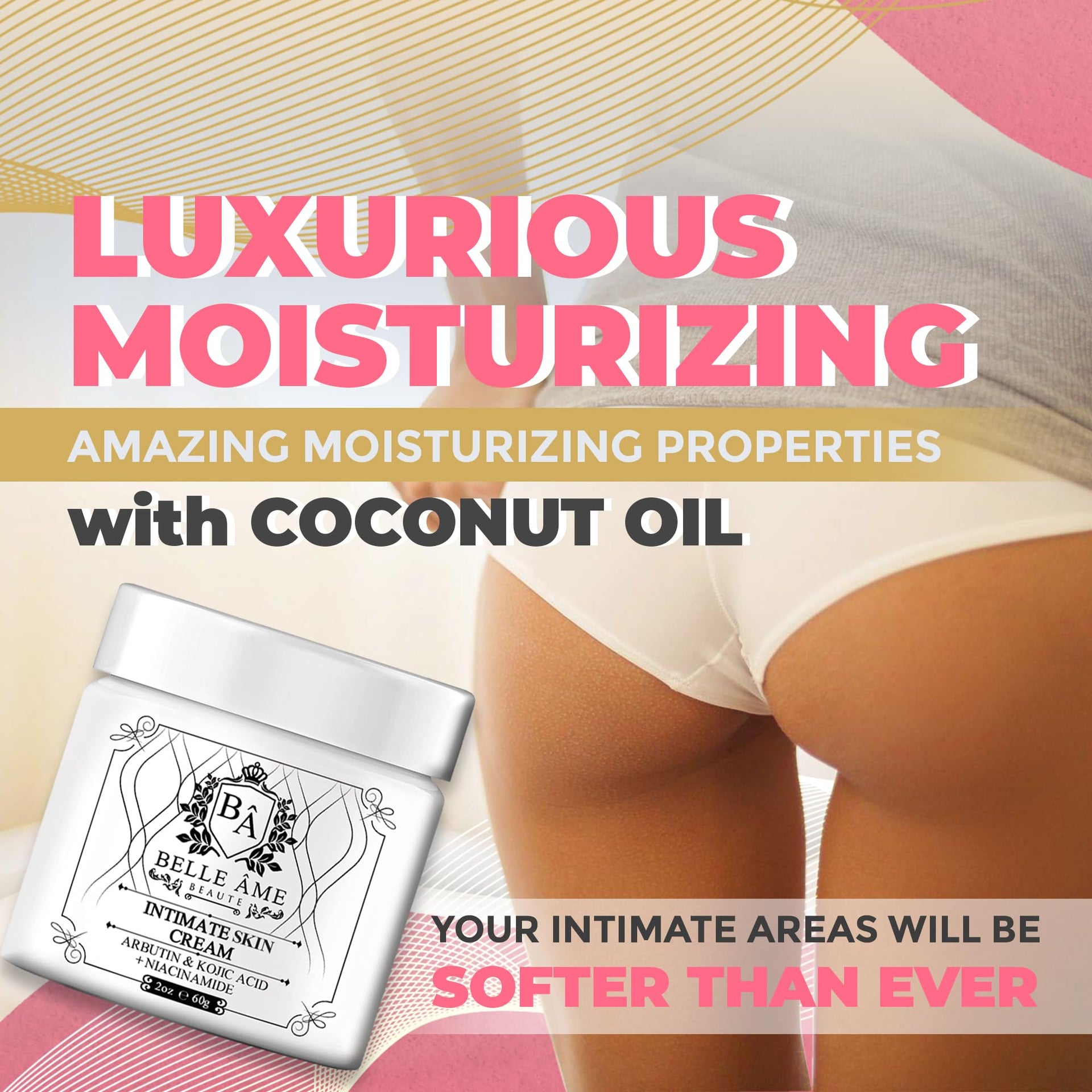 - LUXURIOUS MOISTURIZING Not only does this cream illuminates your skin, but it also has amazing moisturizing properties. With coconut oil as the star, you can expect the skin in your intimate areas will be softer than ever, after using Belle Ame Intimate Cream.