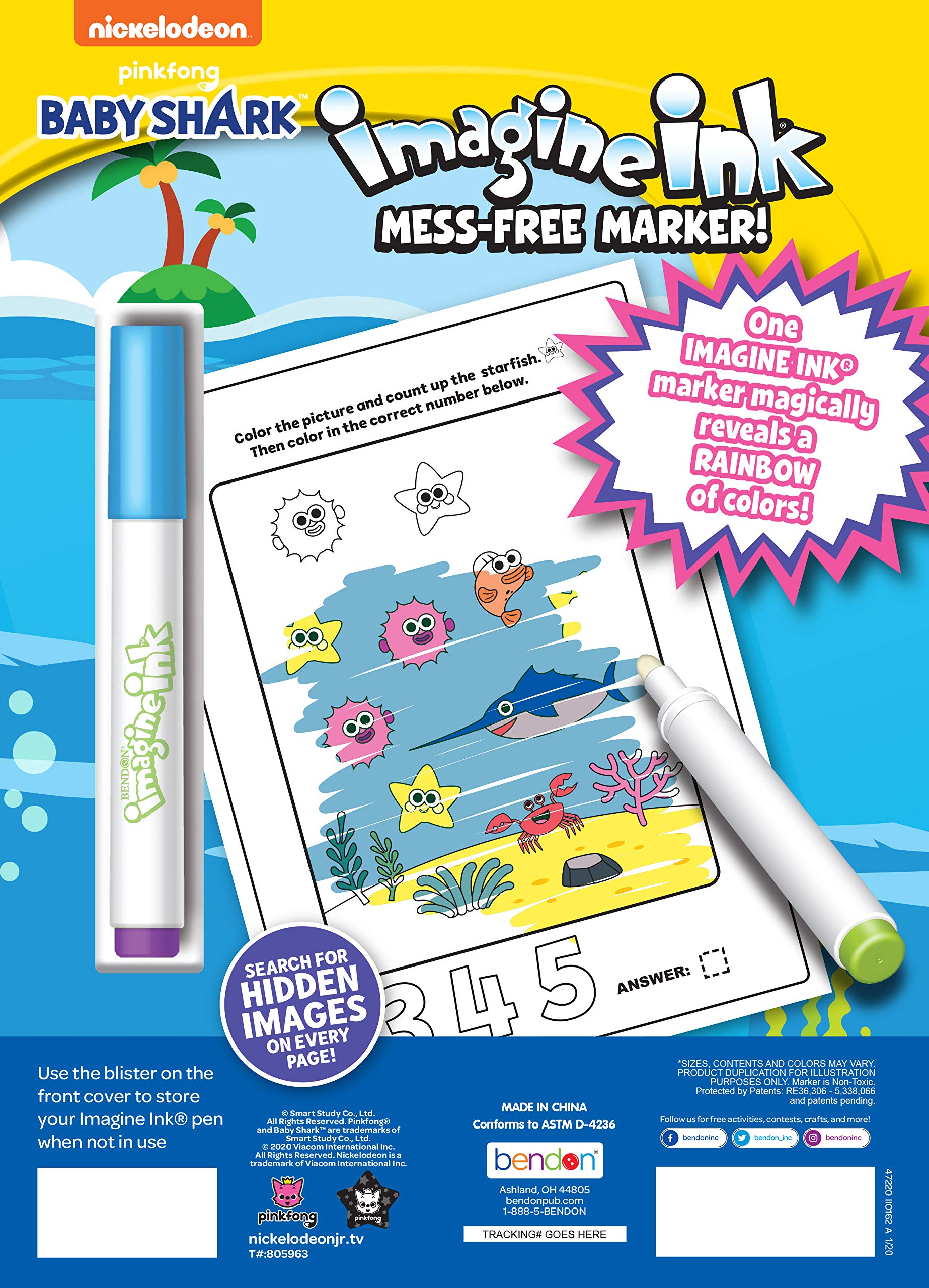 Reveal a rainbow of colors on every page with Bendon’s Imagine Ink® Magic Ink Coloring Book! This patented technology magically reveals a rainbow of colors with just one Magic Ink marker. Your little artist will love finding favorite Baby Shark characters, and you'll love the magic of mess-free coloring! This is an official Nickelodeon licensed product and is ideal for children ages 3 and up.
