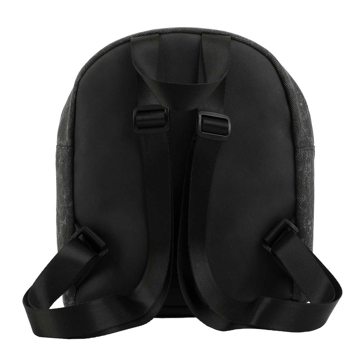 Explore the haunting charm of Tim Burton's universe with this gray Nightmare Before Christmas mini backpack, featuring striking applique art of Jack and Sally against a backdrop of repeating spiderwebs. Crafted from denim and PU materials, this backpack includes a main zipper compartment, a smaller front zipper pocket, and adjustable shoulder straps for comfort. This backpack measures 9.6" H x 8.2" L x 3.7" D and can be wiped clean easily for convenience.
