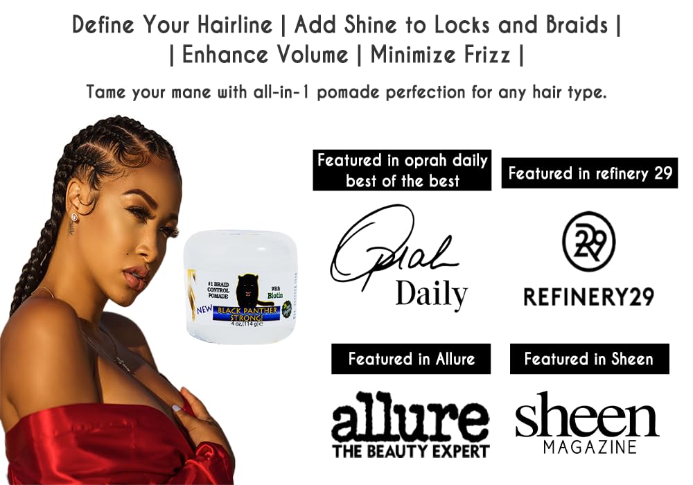 - Braids, locs, and natural hairstyles can benefit from the use of Black Panther Elite Edge & Braid Control Pomade, which helps to maintain their shape and prevent unraveling or frizziness.
