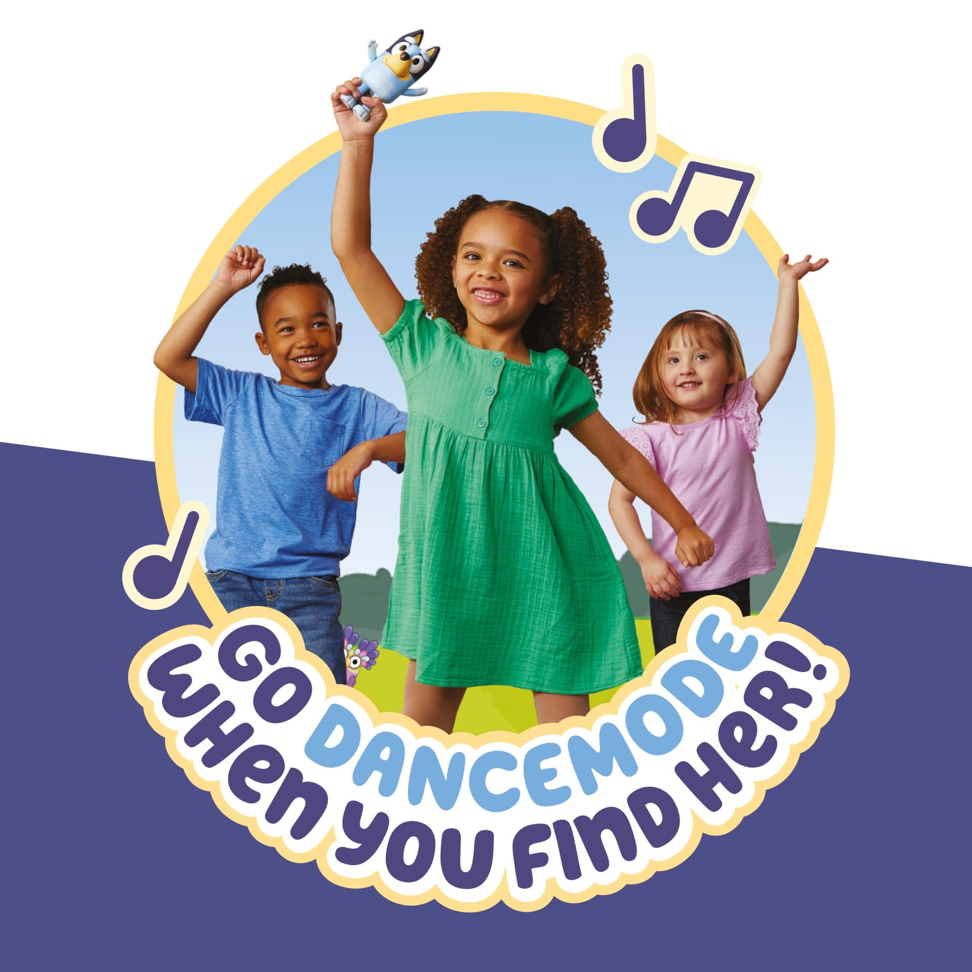 Moose Toys Bluey Hide and Seek Game Toy: Bring home the excitement of hide and seek with the hide and seek Bluey toy, an interactive play companion designed to get kids moving, listening, and giggling. These 6" electronic toddler action figures activate with a press of the nose, starting a timer that challenges children to find her before she talks and laughs again. Fully articulated with movable arms and legs, these action figures for toddlers are perfectly sized for small hands and encourages creative posing and action play. Once found, press her nose again to trigger Bluey's catchy theme song and dance along for a fun-filled celebration.