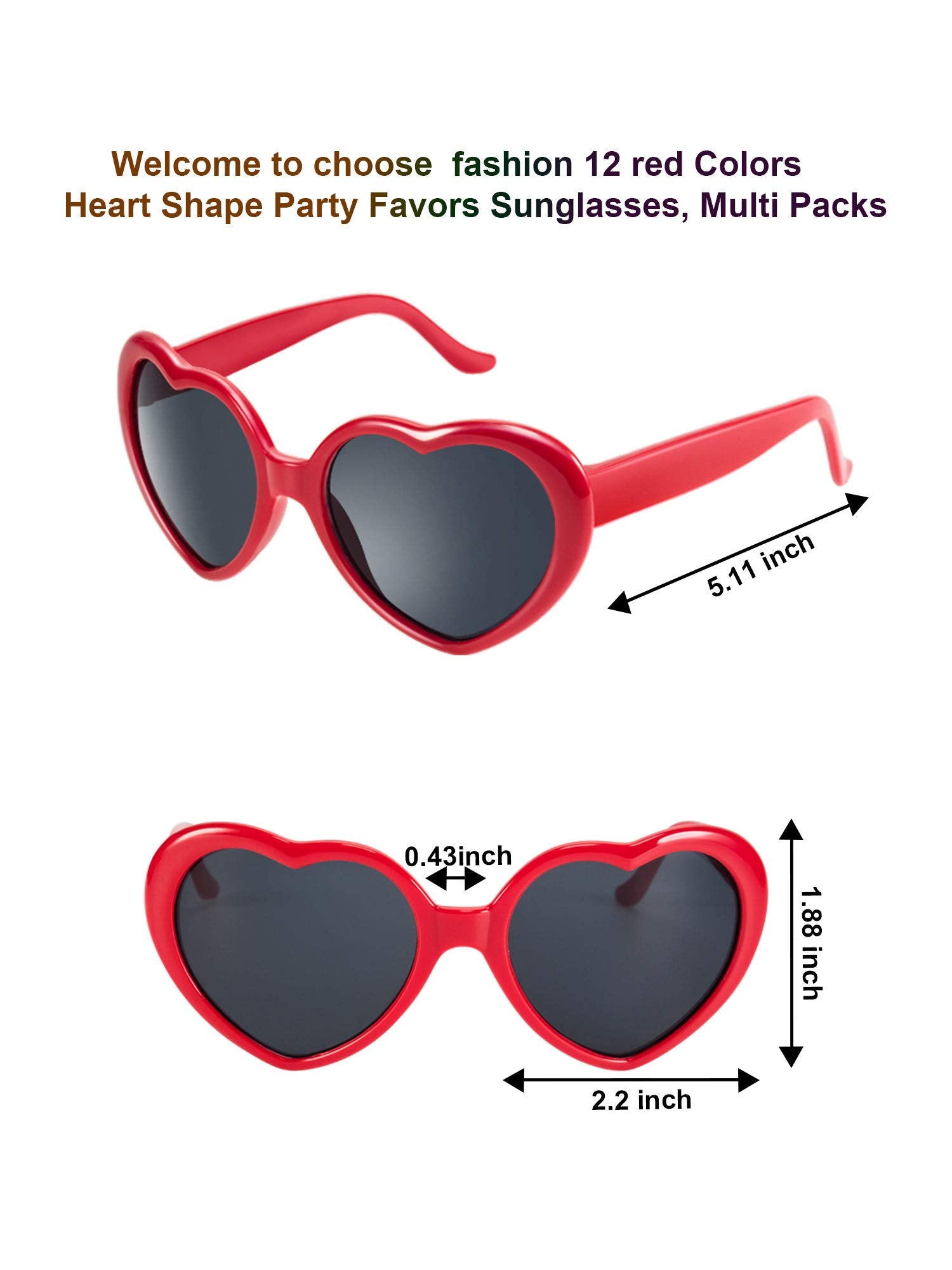 • Quantity: you will receive 12 pieces neon colors heart shape sunglasses, enough quantity in one package can meet you different needs, you can share with friends and family