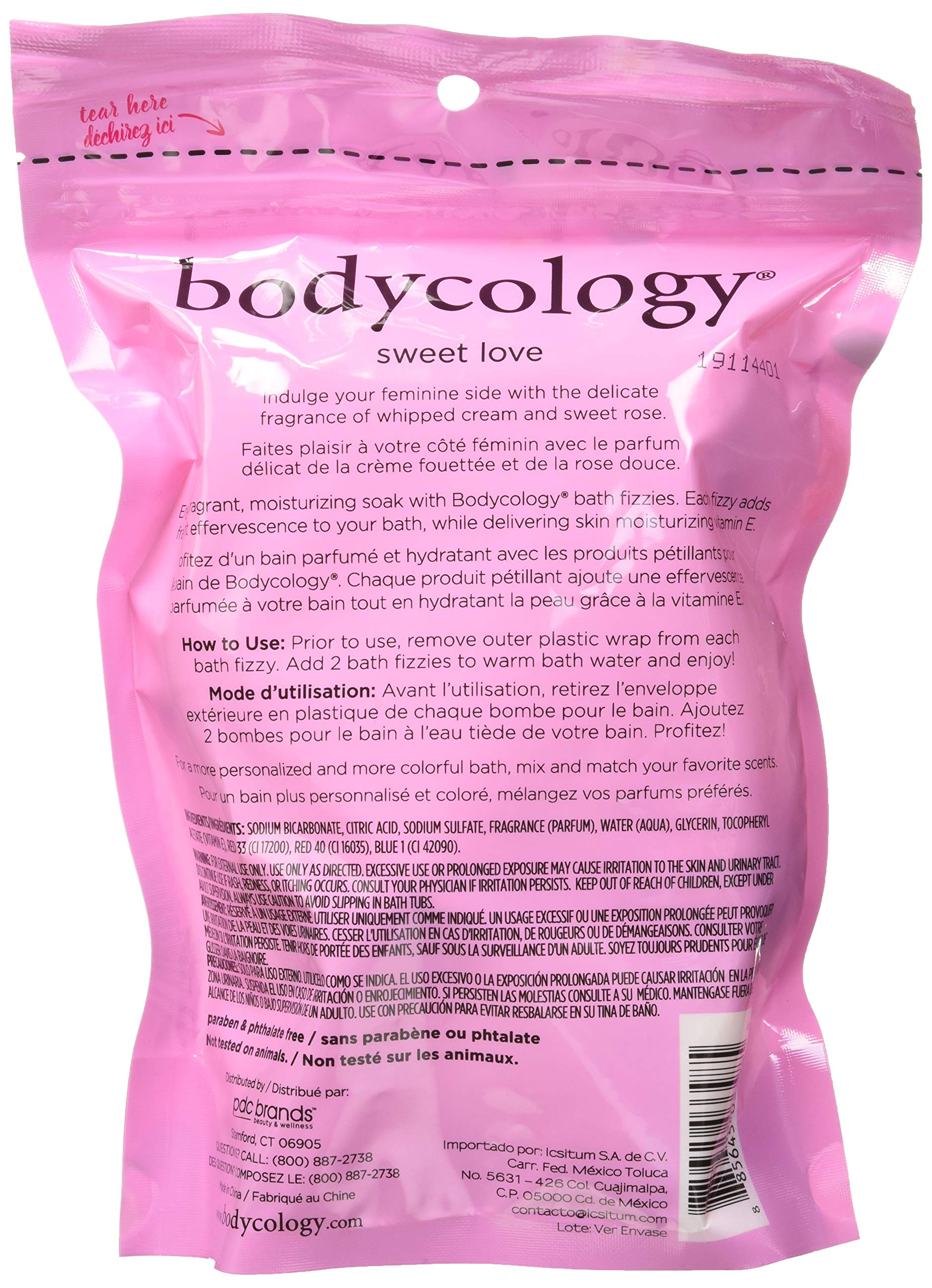 Sweet Love - Frost yourself with the delicate fragrance of whipped cream and sweet rose to indulge your feminine side. Enjoy a fragrant, moisturizing soak with Bodycology bath fizzies. Each fizzy adds a fragrant effervescence to to your bath while delivering skin moisturizing vitamin E.