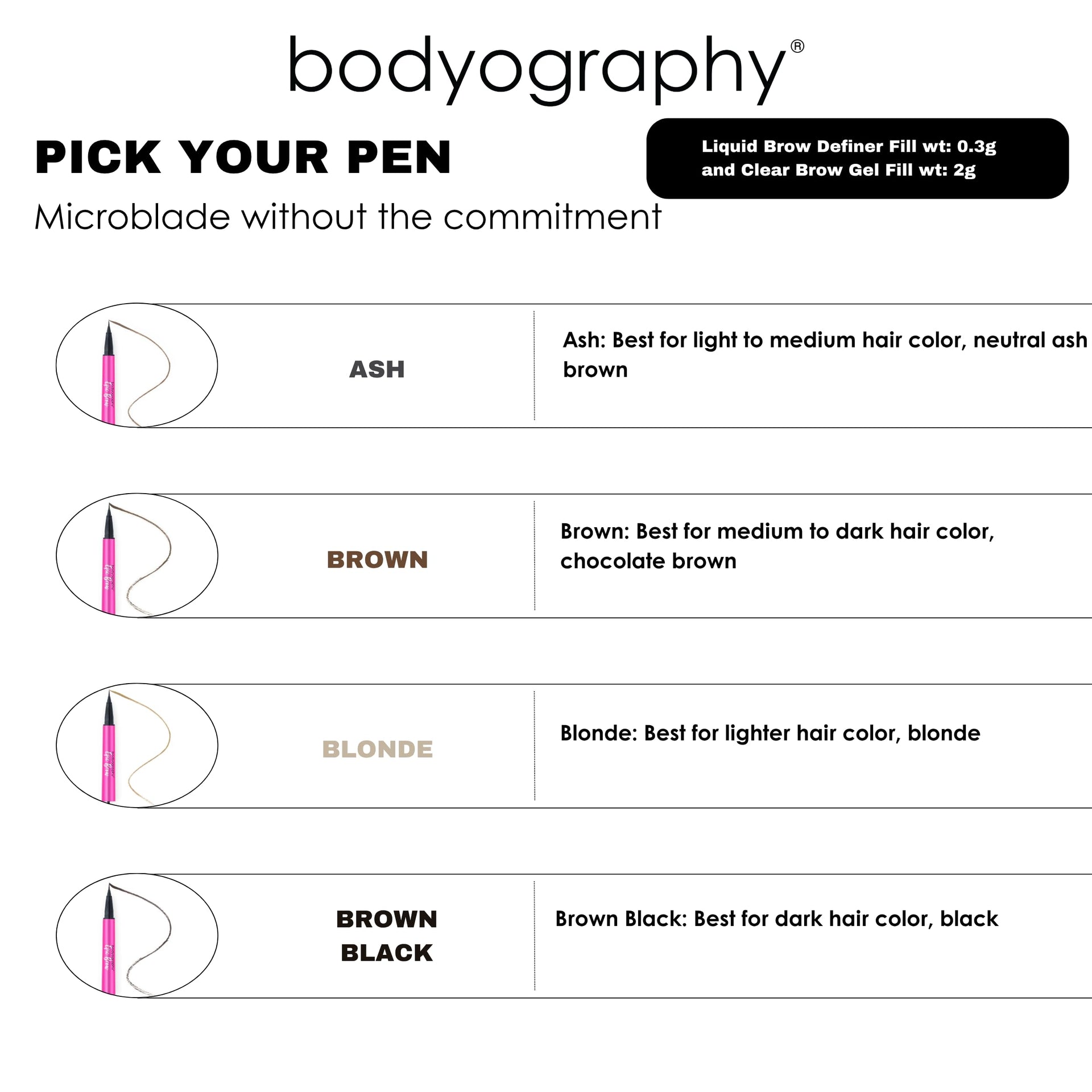 Bodyography Epic Brow Clear Brow Gel + Liquid Brow Definer | 2-in-1 Long-Wear Brow Shaper & Micro-Fine Pen | Hair-Like Strokes, Precise Definition…