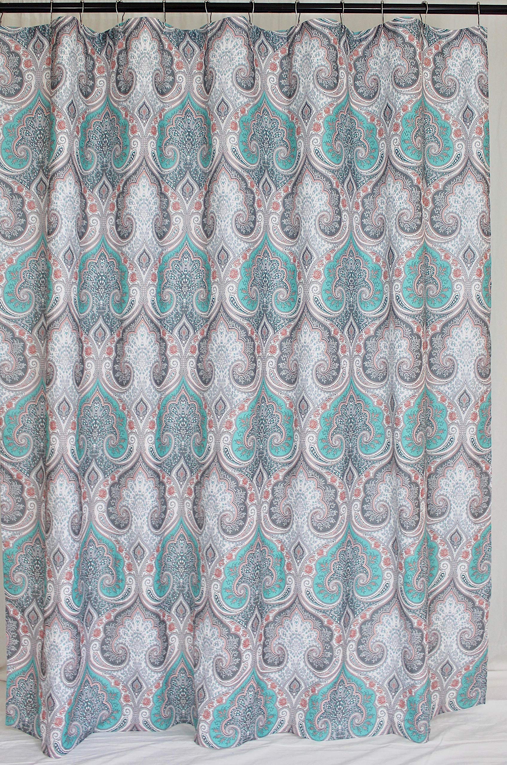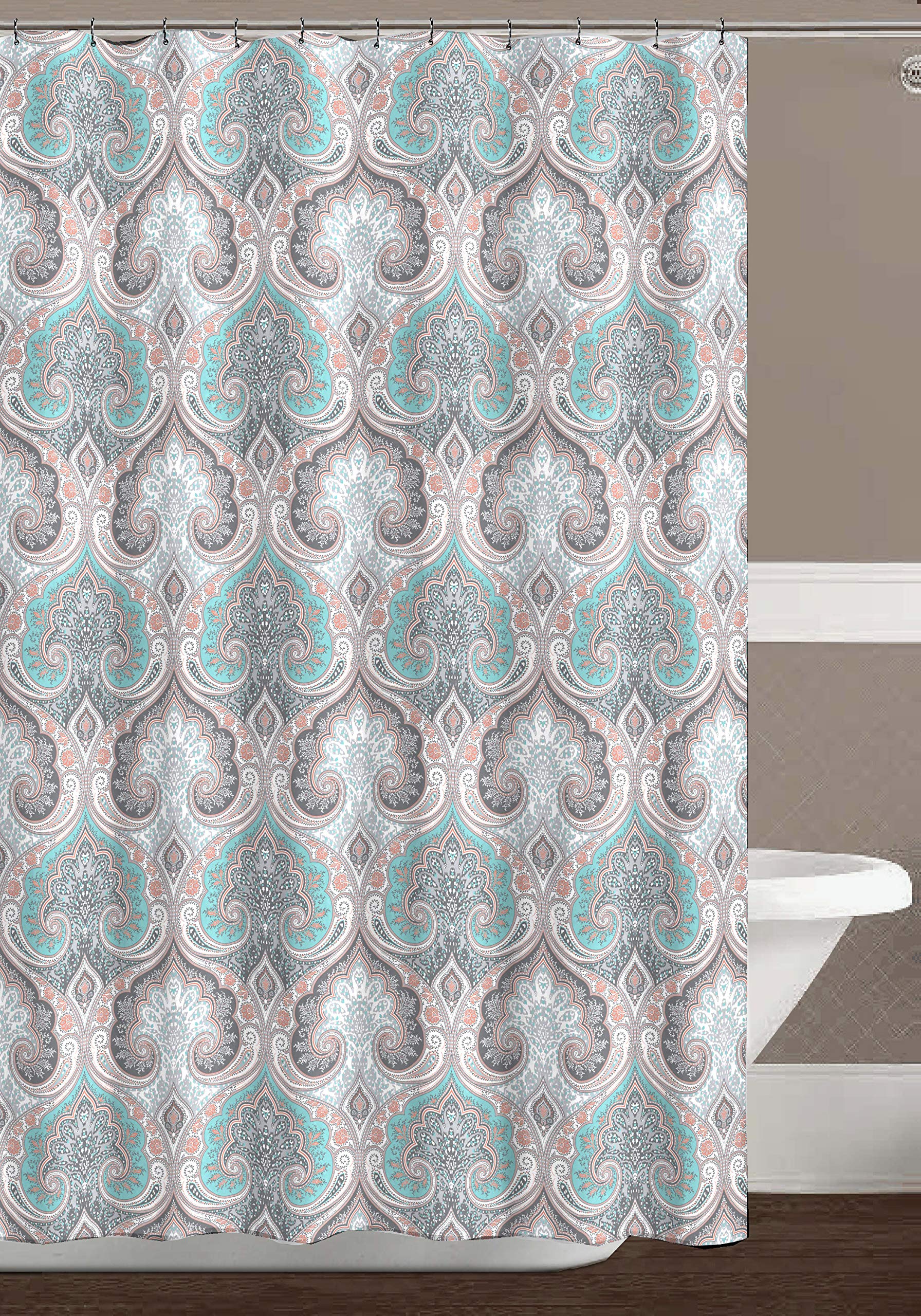 This Moroccan Damask design accommodates many styles of home decor including Contemporary, Eclectic, Victorian. The aqua water color alongside pink and grey are a perfect blend of fashionable appeal that will work with a variety of color palettes.