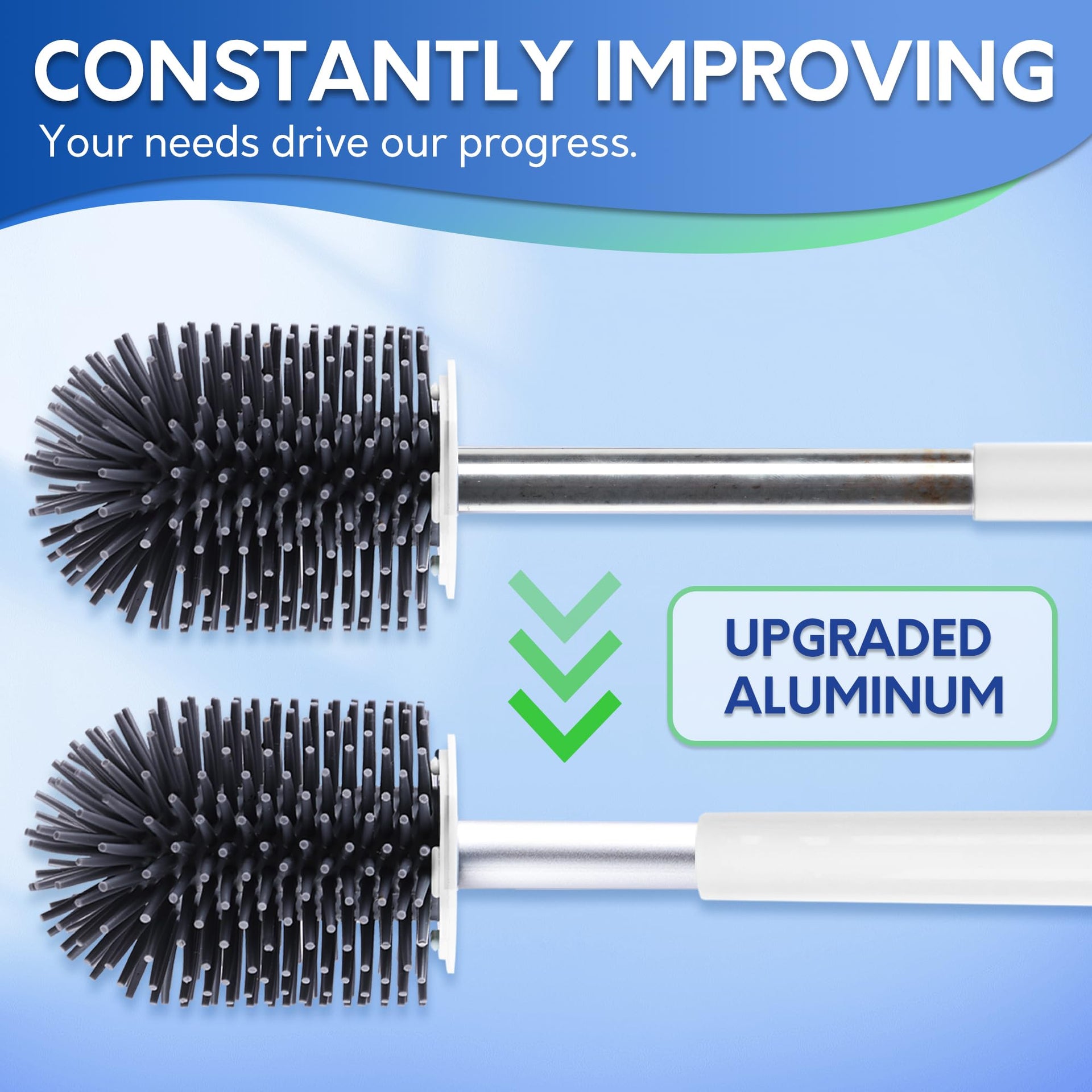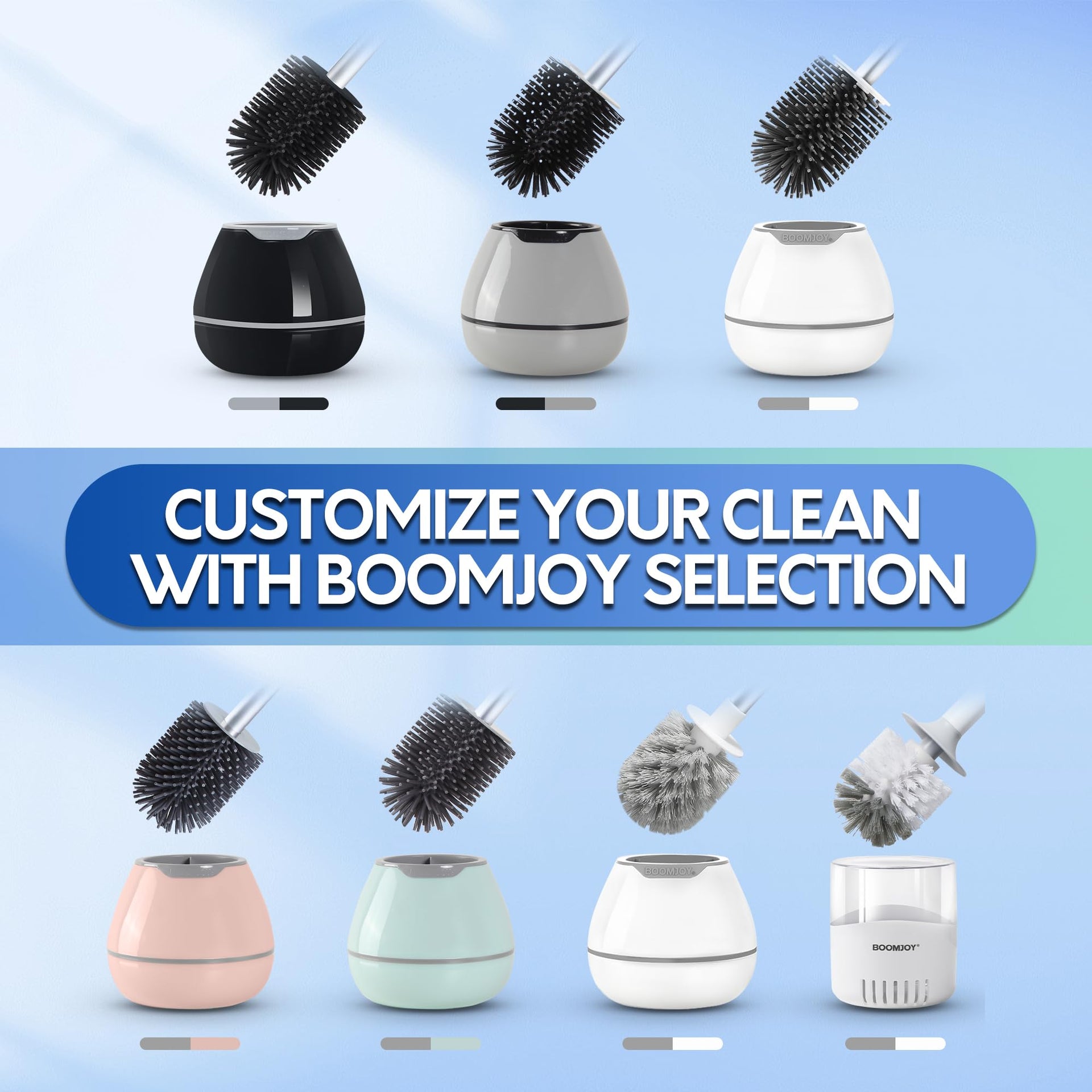BOOMJOY Silicone Toilet Brush and Holder Set, Bathroom Cleaning Kit with Tweezers & Aluminum Handle – White