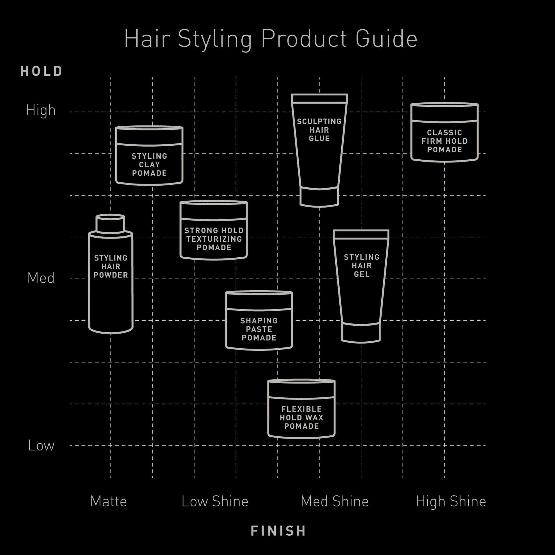 • What it Does: This natural fiber pomade provides a high, pliable hold and a low shine finish, while adding texture to your hair.