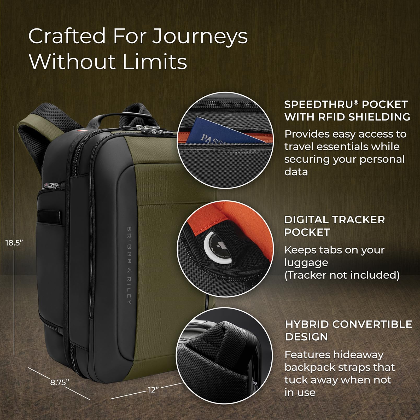 Briggs & Riley Medium Convertible Backpack Duffle Bag - Carry On for Men & Women, Use for Travel, Gym, or Work, Overnight Weekend Luggage, Shoulder Strap, Laptop Compartment - ZDX Collection, Hunter