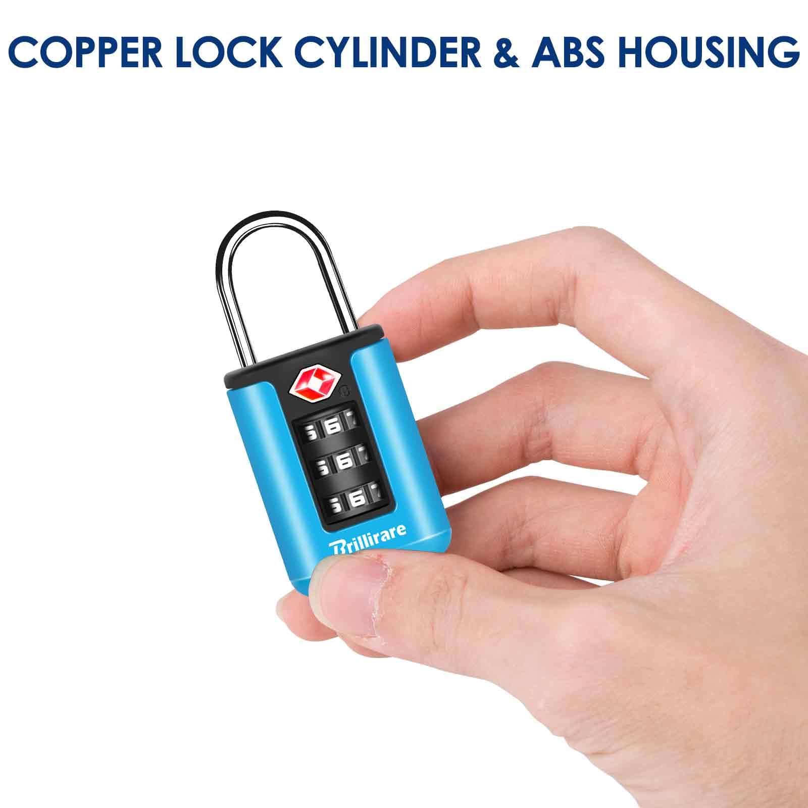BRILLIRARE TSA Approved Luggage Locks 2 Pack – 3 Digit Waterproof Combination Padlocks, Resettable Travel Locks for Bags, Lockers & Gym (Blue)