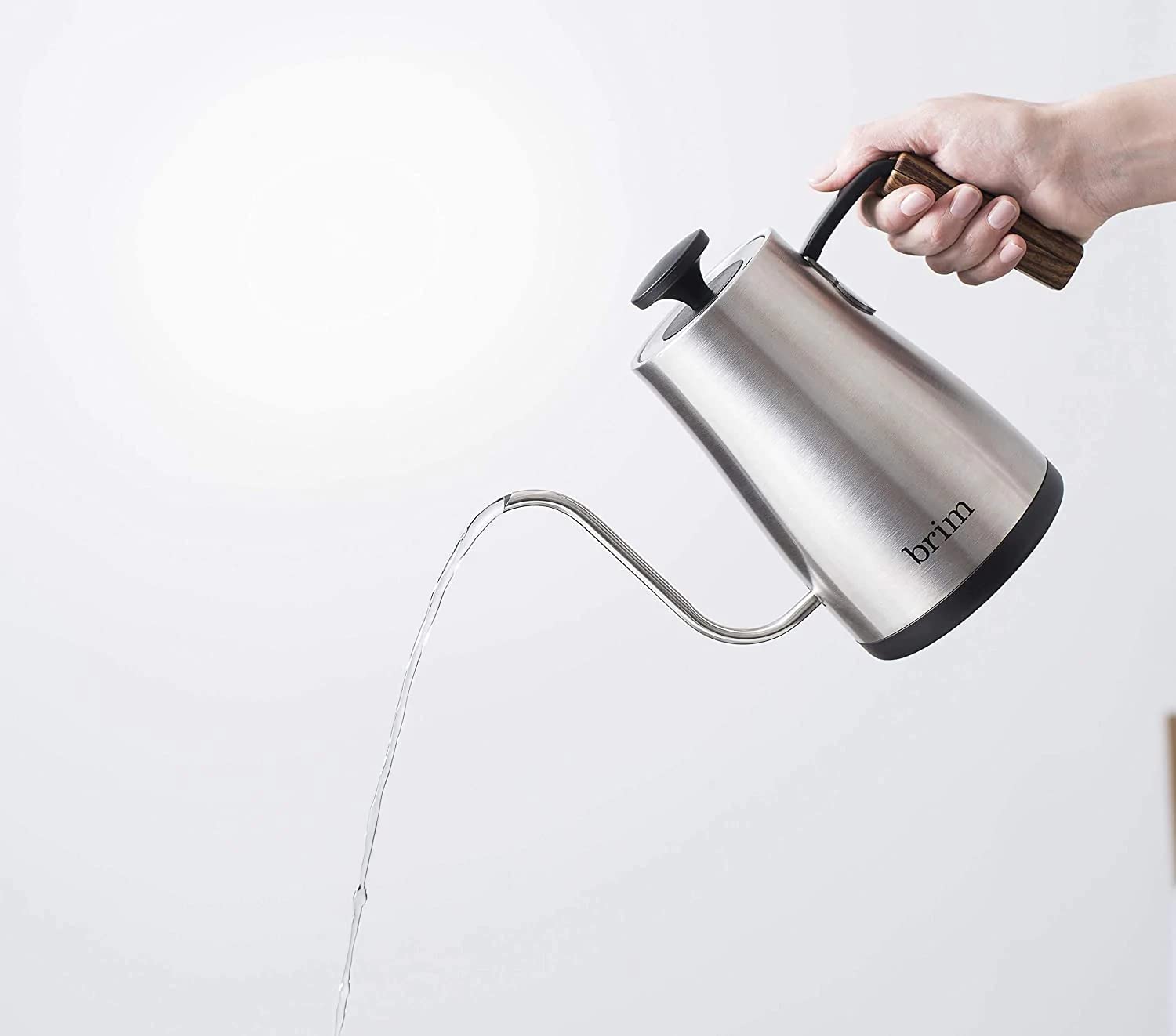 brim 0.8L Gooseneck Kettle w Wood Handle, Easy Brewing Pour Over Coffee, Tea or Hot Beverages, 6 Variable Temperature Presets, Smart Touch Interface…
