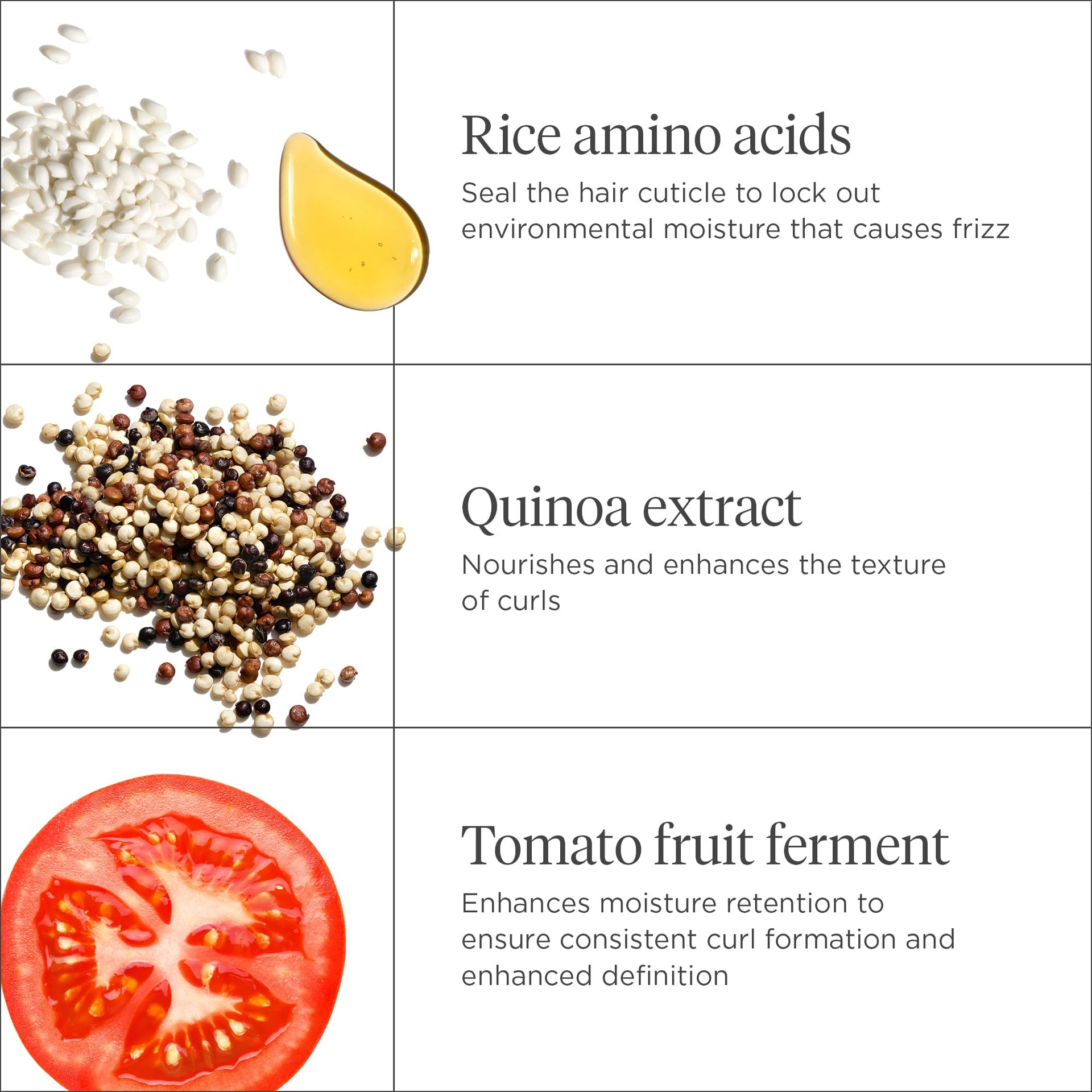 • FRIZZ CONTROL FOR CURL CONSISTENCY: Rice amino acids seal the hair cuticle and block out humidity, while quinoa extract nourishes and strengthens curl texture.