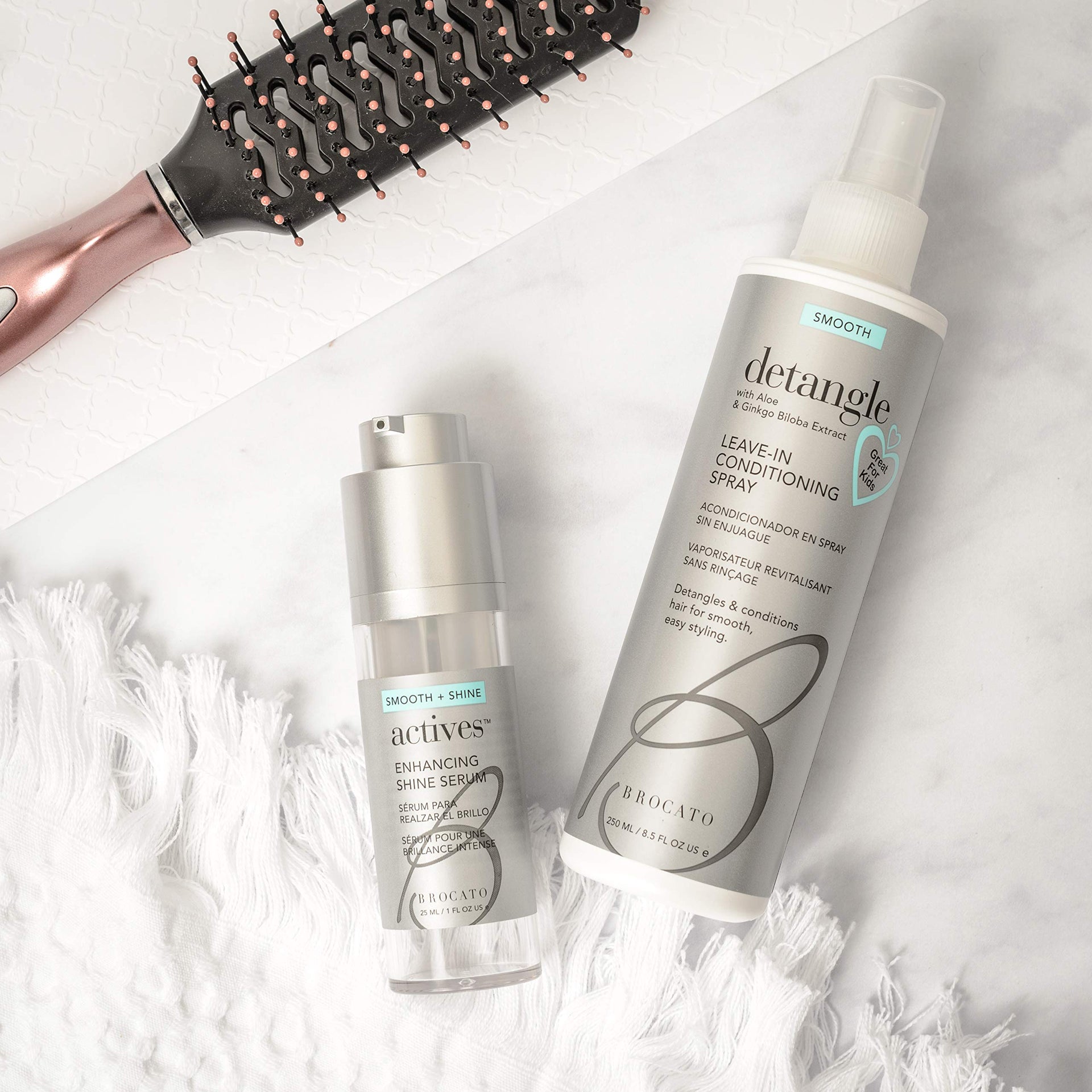 Perfect for straight or curly texture, this protective shine serum actually repairs and replenishes damaged hair. It's the third step in Brocato's regimen designed for hair that requires softening and smoothing. Directions: After using Curlinterrupted Smoothing & Hydrating Shampoo and Treatment, apply to wet hair, concentrating on the ends to middle of hair shaft. When used with a blow dryer, it works as a conditioning booster. When applied to dry hair before flat ironing, it protects and seals in shine.