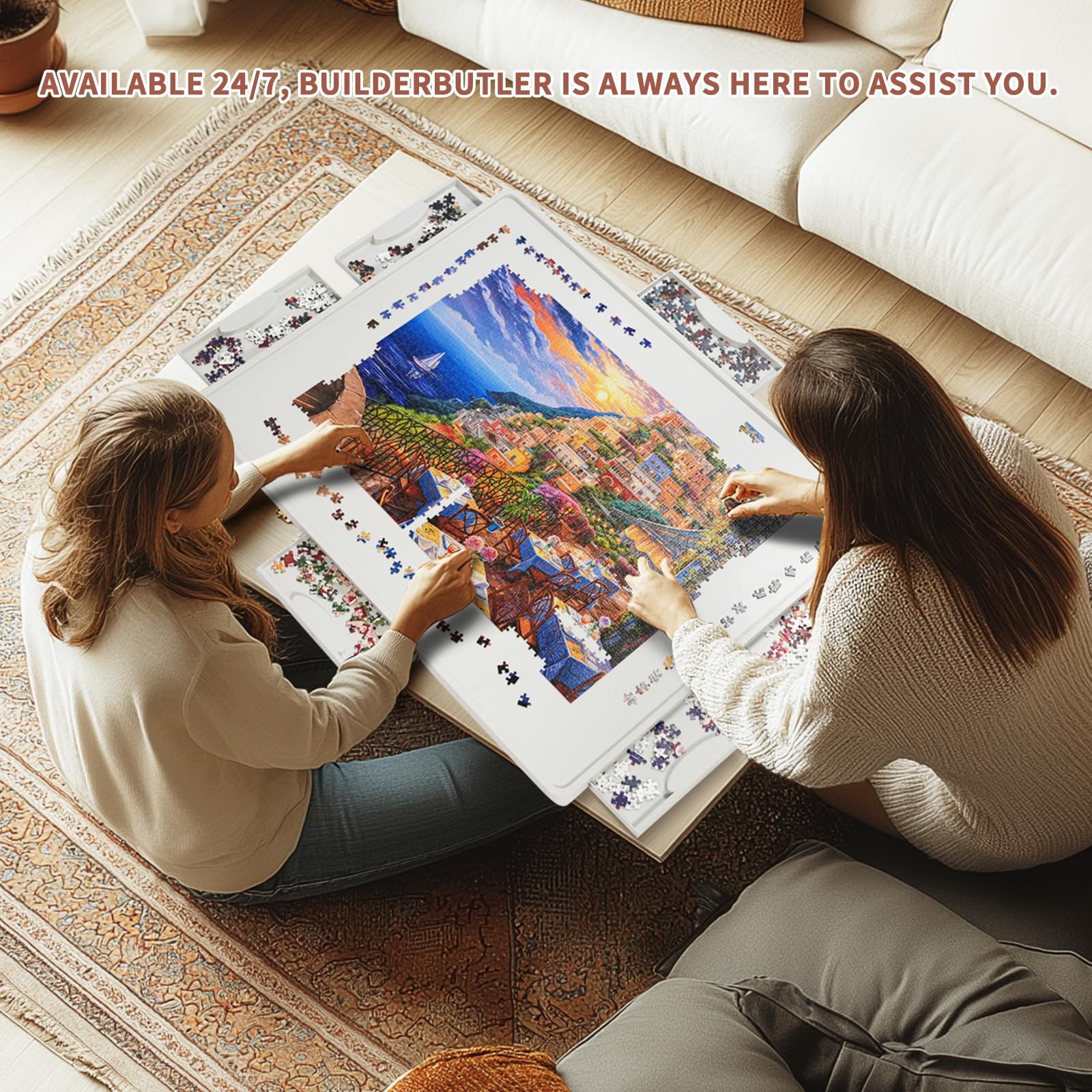 BuilderButler 1500 Piece Rotating Puzzle Board – 6 Sliding Drawers, Cover & 360° Lazy Susan Spin, 34.25"x26.38" Portable Puzzle Table