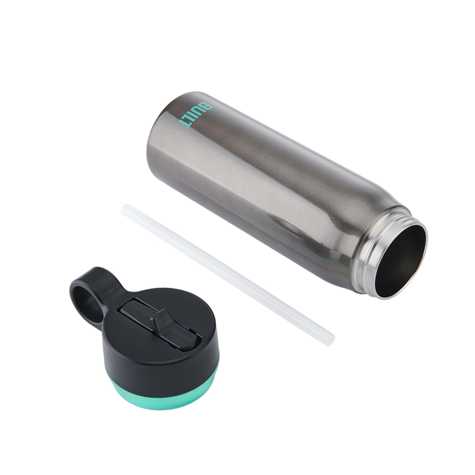Enjoy all kinds of drinks with this Graphite 20-fluid-oz Wide Mouth Cascade Bottle with Straw Lid. The double-walled, vacuum-sealed construction keeps drinks cold for up to 24 hours, or hot for up to 6 hours, while the design prevents condensation from forming on the exterior. This innovative bottle is made from durable, food-safe stainless steel, and features a rubber grip that keeps it secure in hands and provides comfort. It also has a wide mouth opening that makes adding water or ice, and cleaning the interior simple, along with a straw lid for easy sipping and a leak-proof seal. Plus, it fits in standard-sized cup holders for on-the-go sipping. Lid is dishwasher safe, body is hand wash only. Measures 3.15" L x 4.53" W x 9.84" H.