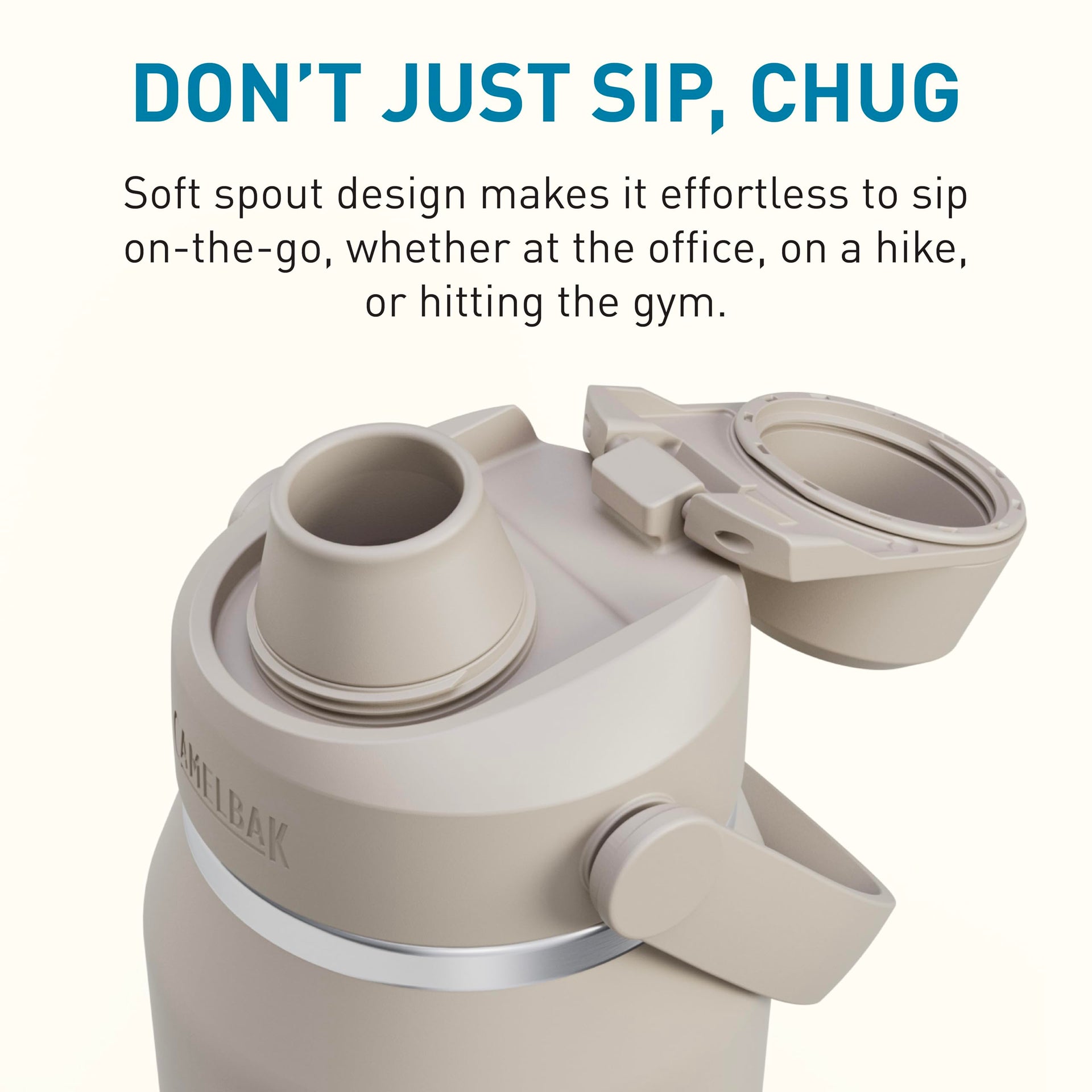 Do not just sip, chug. The CamelBak Thrive Chug Insulated Stainless Steel Water Bottle is built for serious hydration and serious performance. Whether you are powering through a workout, commuting, or exploring the outdoors, this bottle is designed to keep up. Made with double-wall vacuum insulated stainless steel, it keeps your drinks hot or cold for hours. The leak-proof lid and sweat-proof design ensure a mess-free experience, while the integrated protective bumper adds durability and grip. With a comfortable carry handle and dishwasher-safe construction, this bottle is as convenient as it is tough. Stay refreshed and ready for anything with a bottle made for your active lifestyle.