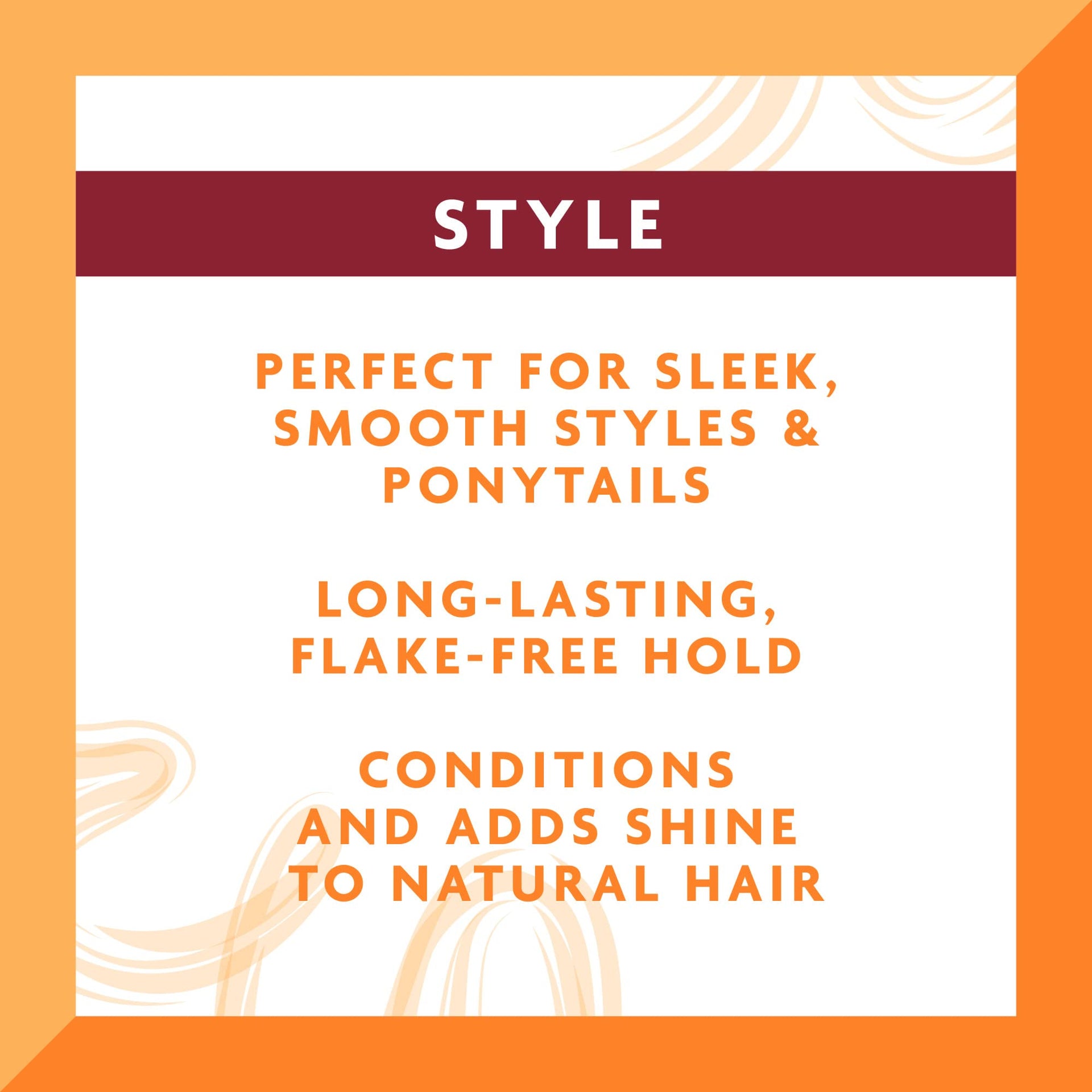 • SMOOTHS: Made with pure Shea butter to condition and add shine to natural hair making it perfect for sleek, smooth styles and ponytails.