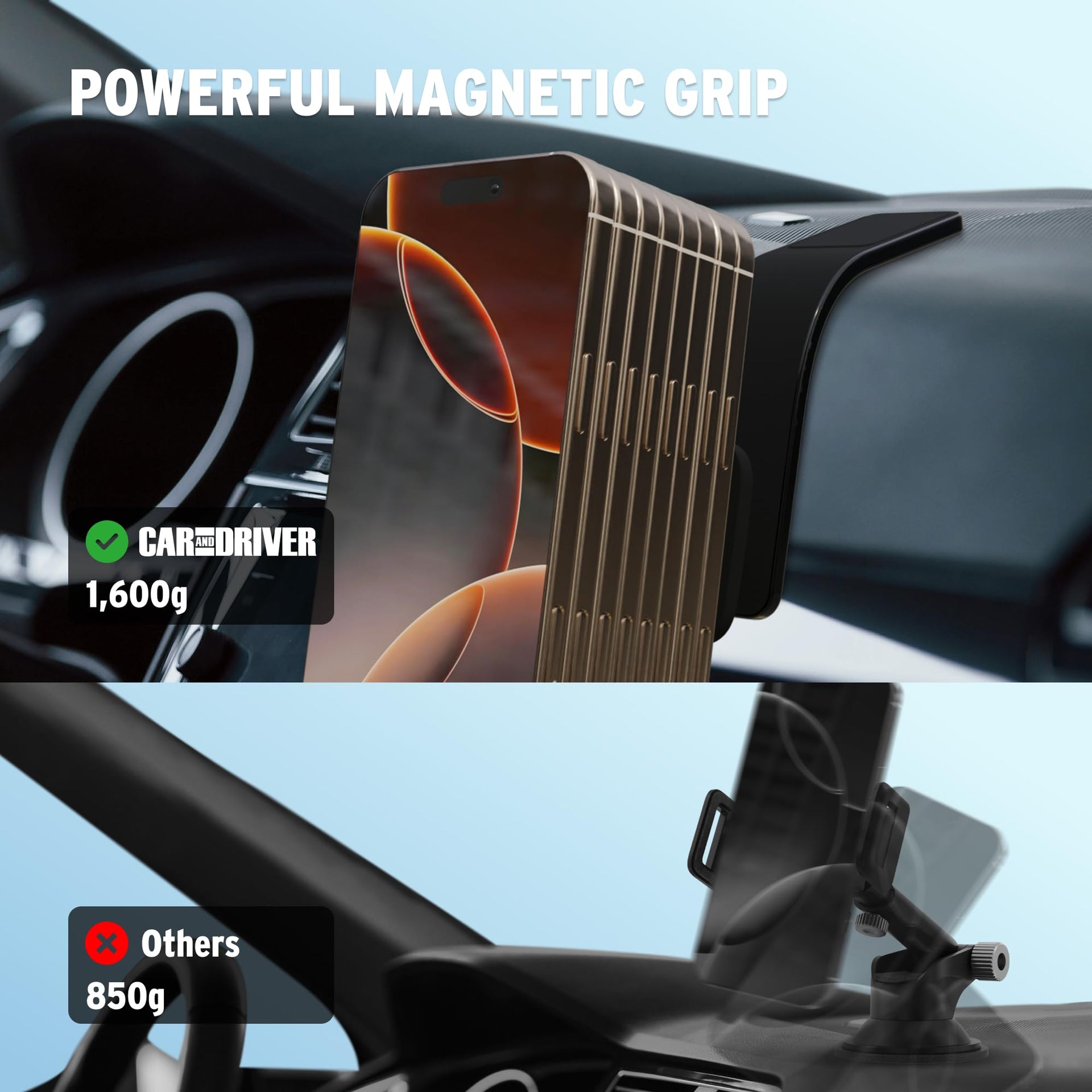 Car and Driver Magnetic Phone Holder for Car, Dashboard Phone Mount with Flexible Aluminum-Alloy Arm, Compatible with MagSafe Devices and iPhone 16…