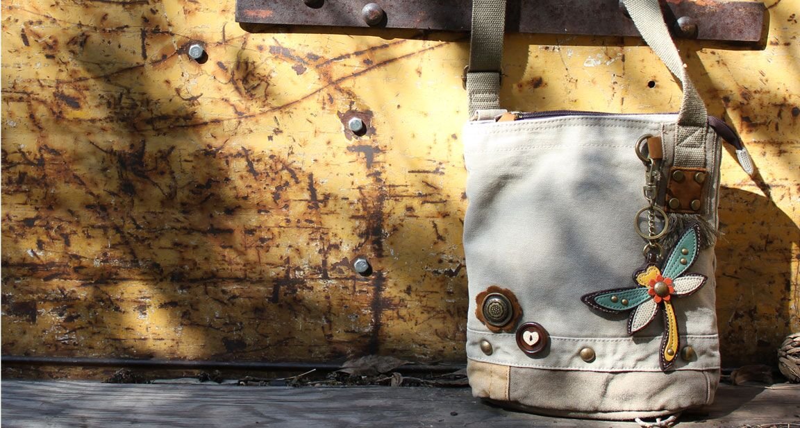 CHALA Patch Cross-Body Women Handbag, Canvas Messenger Bag, Metal Dragonfly - Brown