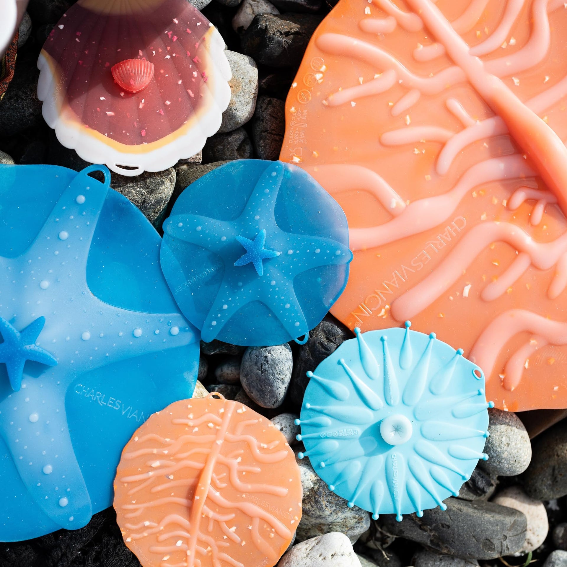 Charles Viancin - Coastal Silicone Lid for Food Storage - Costal Drink Covers - Set of 4 - One of Each - Creates an Airtight Seal on Any Smooth Rim…