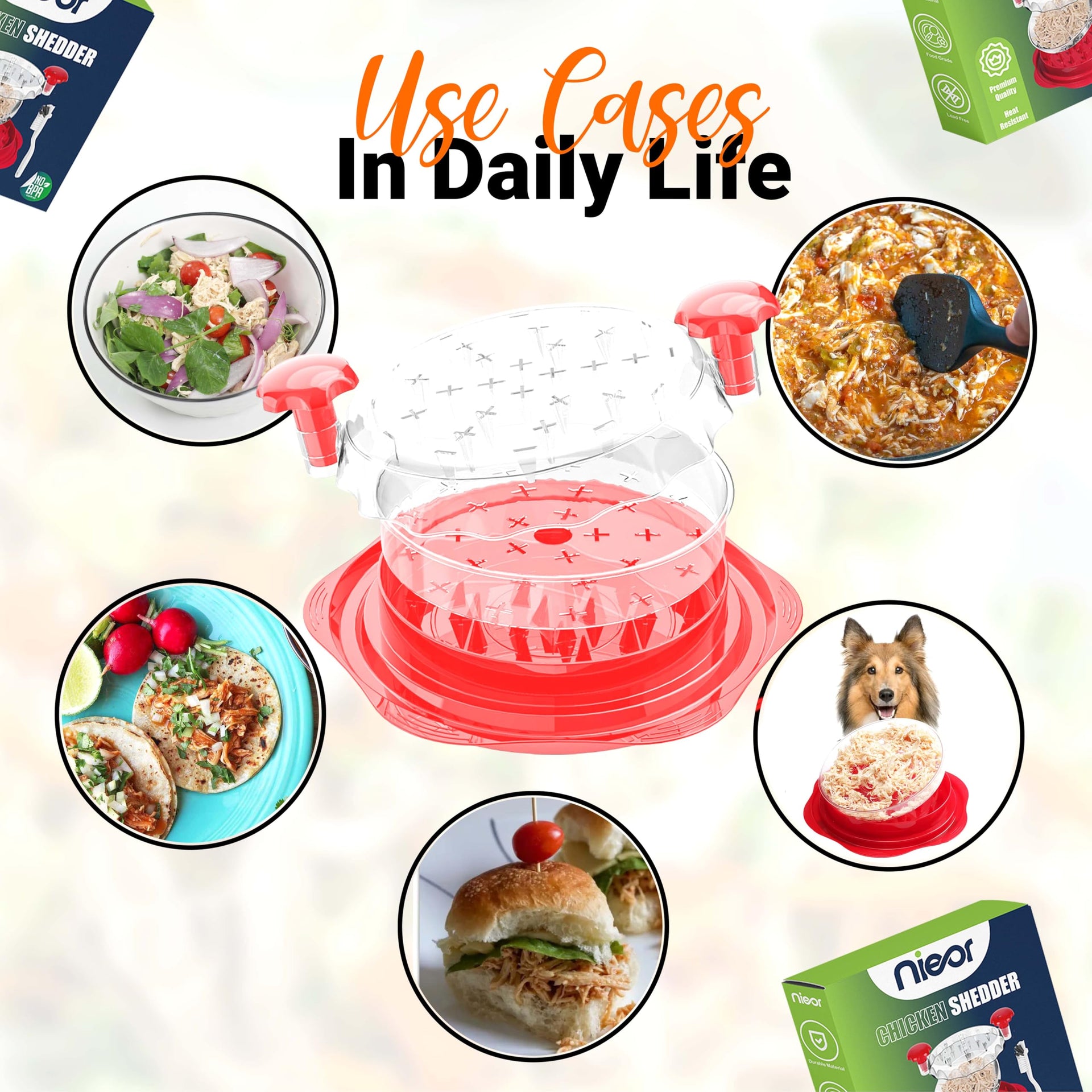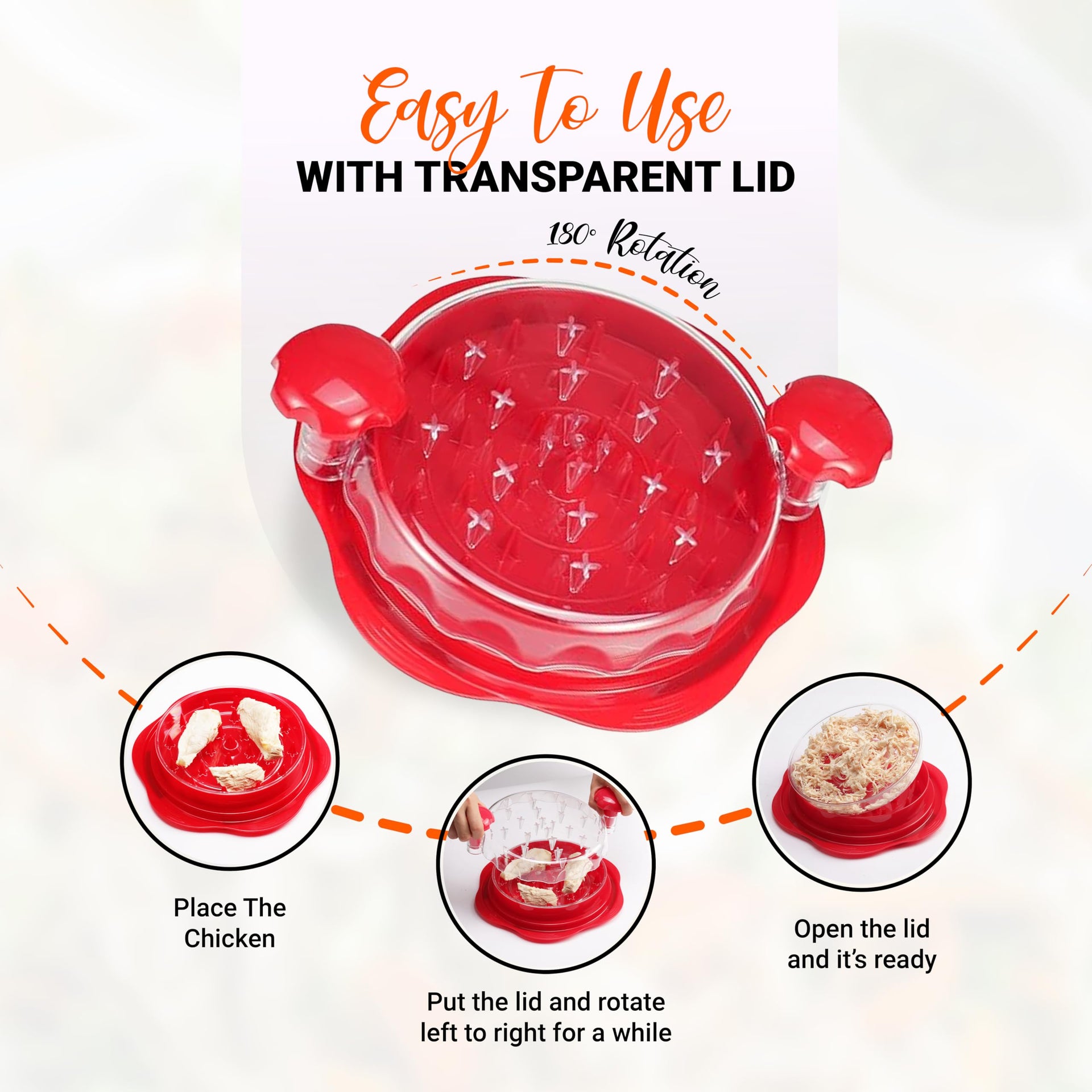 Large Chicken Shredder Tool – 10" BPA-Free Manual Meat Shredder for Chicken, Pork & Beef, Anti-Slip Ergonomic Handle, Brush Included, Red