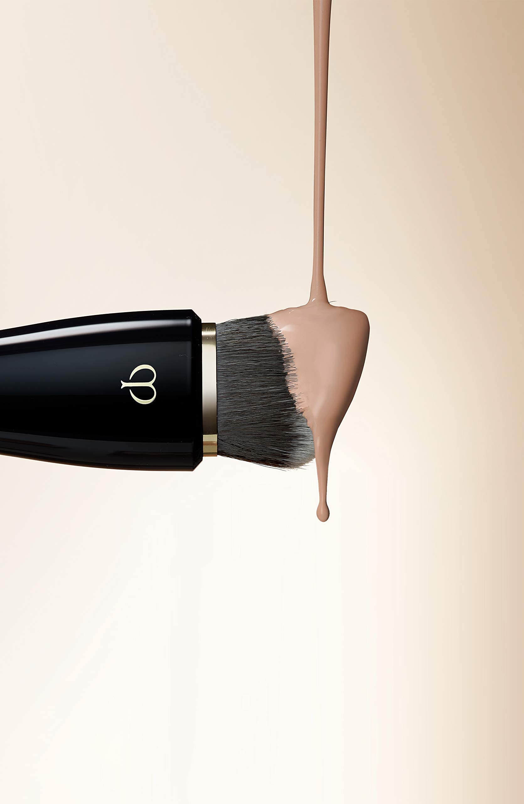For greater coverage, lift a small amount of foundation onto the brush and gently layer, using light tapping motions.