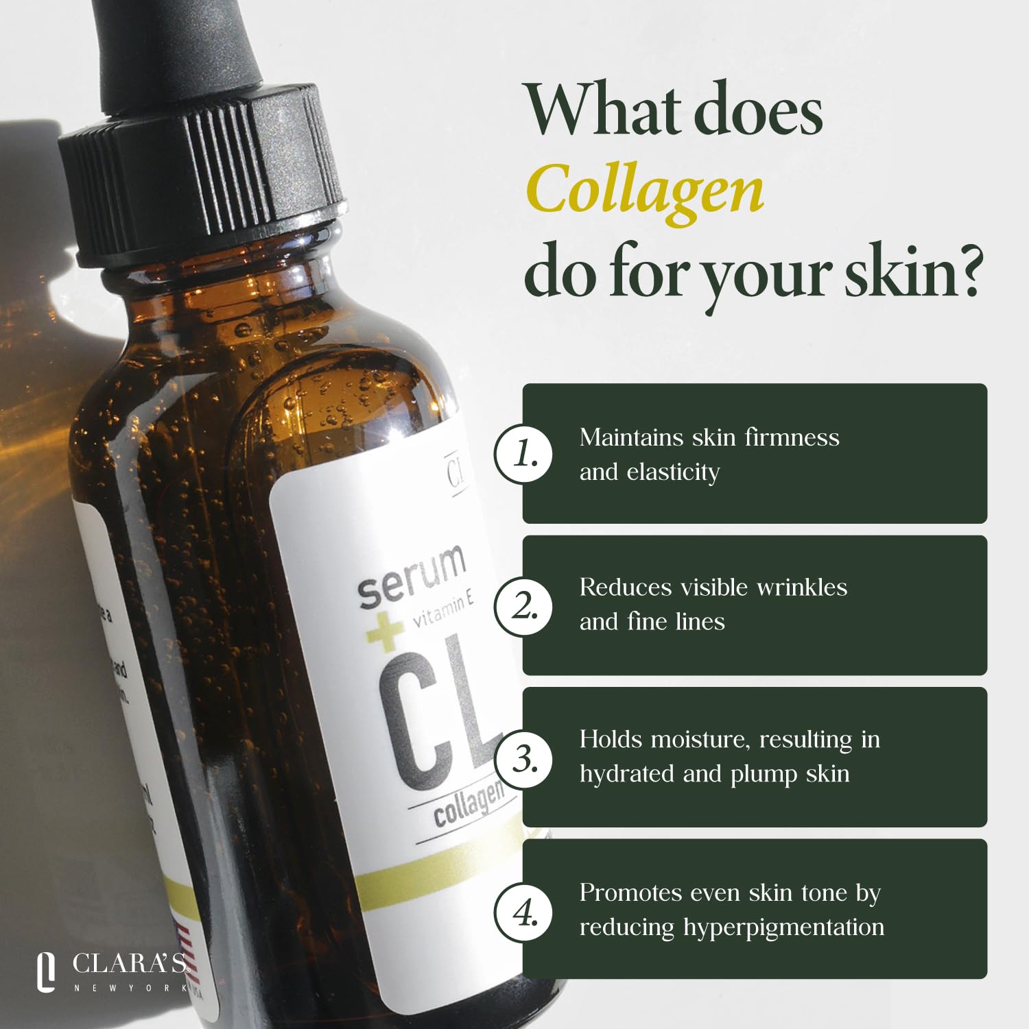 • [HYDRATING & NOURISHING] Infused with Collagen and Vitamin E, this lightweight serum helps moisturize and nourish skin for a smoother, healthier appearance.
