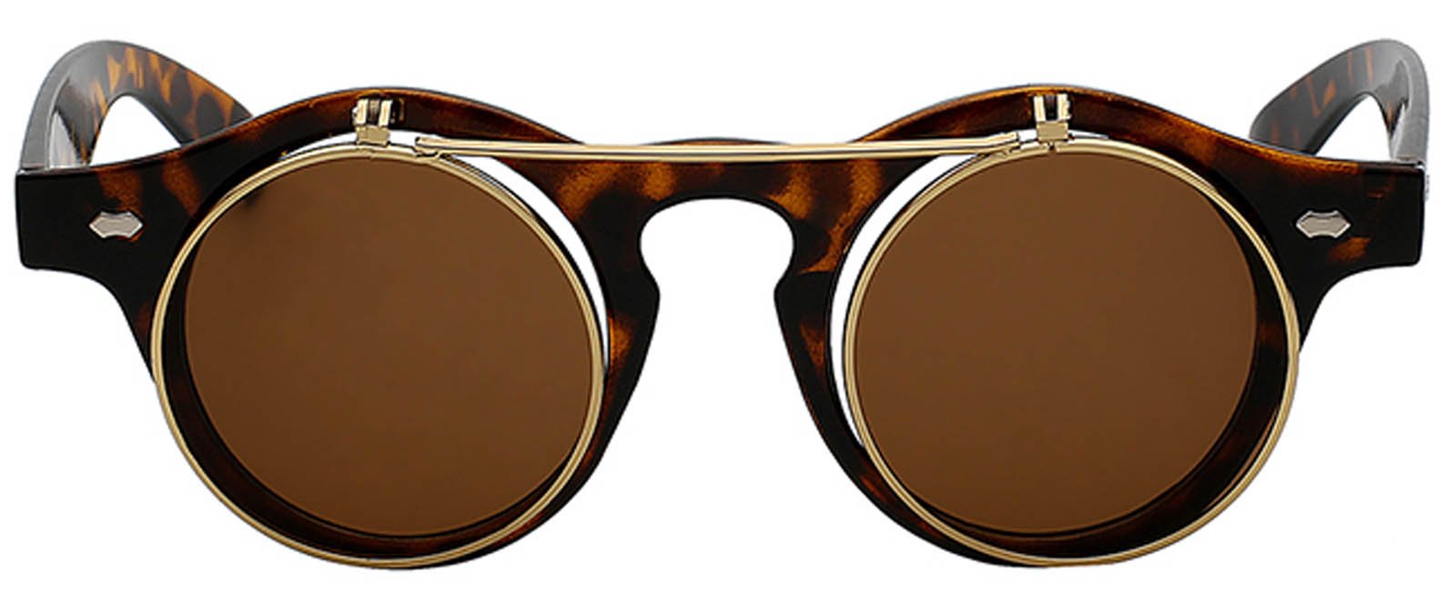 Classic Vintage Circle Flip Up Sunglasses Leopard Gold Frame Retro
