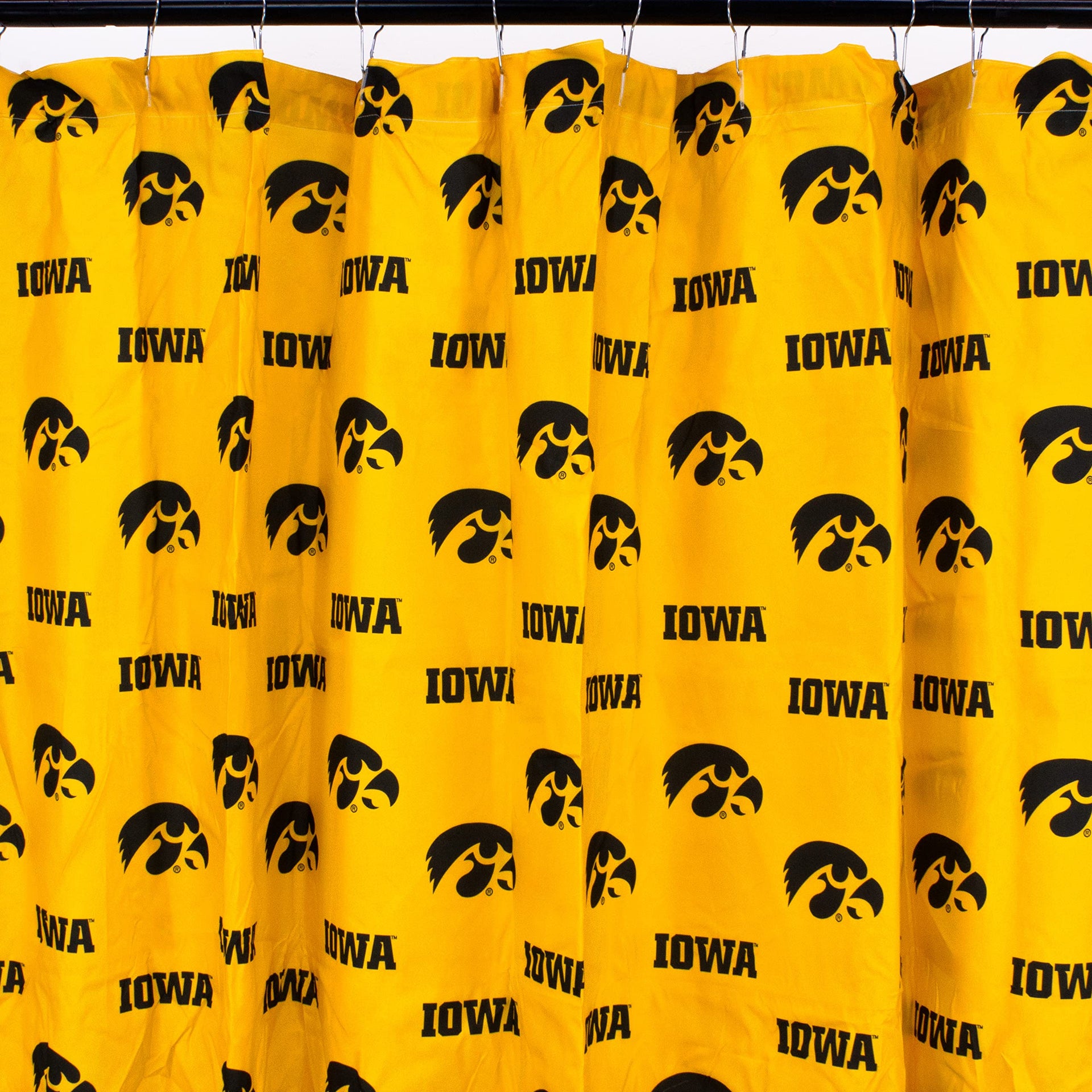 College Covers brand NCAA licensed shower curtain cover can be used either with or without a liner, since its easy to wash. This does not include a plastic liner. The shower curtain measures 70 inches long by 72 inches wide and is printed in an all over pattern with a bright and vibrant team color background. 12 buttonholes across the top make it easy to put up and take down with any style curtain rings (not included). This also matches College Covers brand curtain panels and valances. Machine wash in cold water with like colors and tumble dry on a low heat. Imported. Licensed by Everything Comfy.