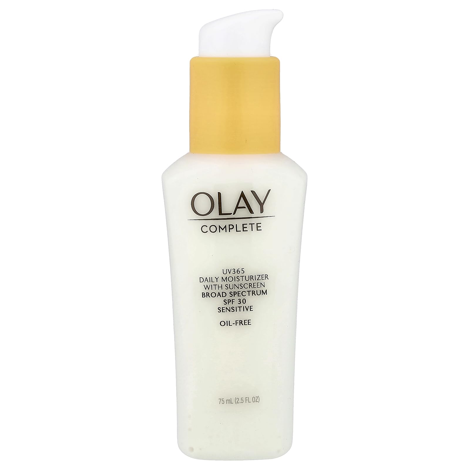 WHAT IT DOES Protect against the #1 cause of aging skin-damage from the sun. Recommended by the Skin Cancer Foundation, Olay Complete Daily Moisturizer with Broad Spectrum Sunscreen SPF 30 and UVA/UVB protection provides long-lasting hydration for sensitive skin. This gentle, lightweight lotion is fragrance-free and features zinc oxide, a gentle mineral sunscreen. It also includes Vitamin E and aloe to help maintain healthy-looking skin. Unlike many facial moisturizers with sunscreen, Complete All Day facial moisturizer with SPF is non-greasy and lightweight. Its oil-free formula leaves skin with a healthy glow. Who uses this SKIN TYPE Sensitive, Skin Concerns Sun Protection How to Use 1. Apply liberally 15 minutes before sun exposure. Reapply at least every 2 hours. Use water resistant sunscreen if swimming or sweating. Sun Protection Measures: Spending time in the sun increases your risk of skin cancer and early skin aging. 2. To decrease this risk, regularly use a sunscreen with a Broad Spectrum SPF value of 15 or higher and other sun protection measures including: Limit time in sun, especially from 10 AM - 2 PM. Wear long-sleeved shirts, pants, hats, and sunglasses. Ingredients ACTIVE INGREDIENTS: OCTINOXATE 7.5%, OCTISALATE 2.5%, OCTOCRYLENE 2.5%, ZINC OXIDE 6.9%. INGREDIENTS: WATER, ISOHEXADECANE, GLYCERIN, NIACINAMIDE*, PANTHENOL**, CAMELLIA SINENSIS LEAF EXTRACT, TOCOPHERYL ACETATE***, ALOE BARBADENSIS LEAF EXTRACT, CYCLOPENTASILOXANE, C13-14 ISOPARAFFIN, STEARETH-21, PEG/PPG-20/20 DIMETHICONE, LAURETH-7, STEARETH-2, STEARYL ALCOHOL, BEHENYL ALCOHOL, CETYL ALCOHOL, DISODIUM EDTA, POLYACRYLAMIDE, POLYETHYLENE, OLETH-3 PHOSPHATE, POLYMETHYLSILSESQUIOXANE, TRIETHOXYCAPRYLYLSILANE, DMDM HYDANTOIN, IODOPROPYNYL BUTYLCARBAMATE SKIN TYPE Sensitive, Skin Concerns Sun Protection