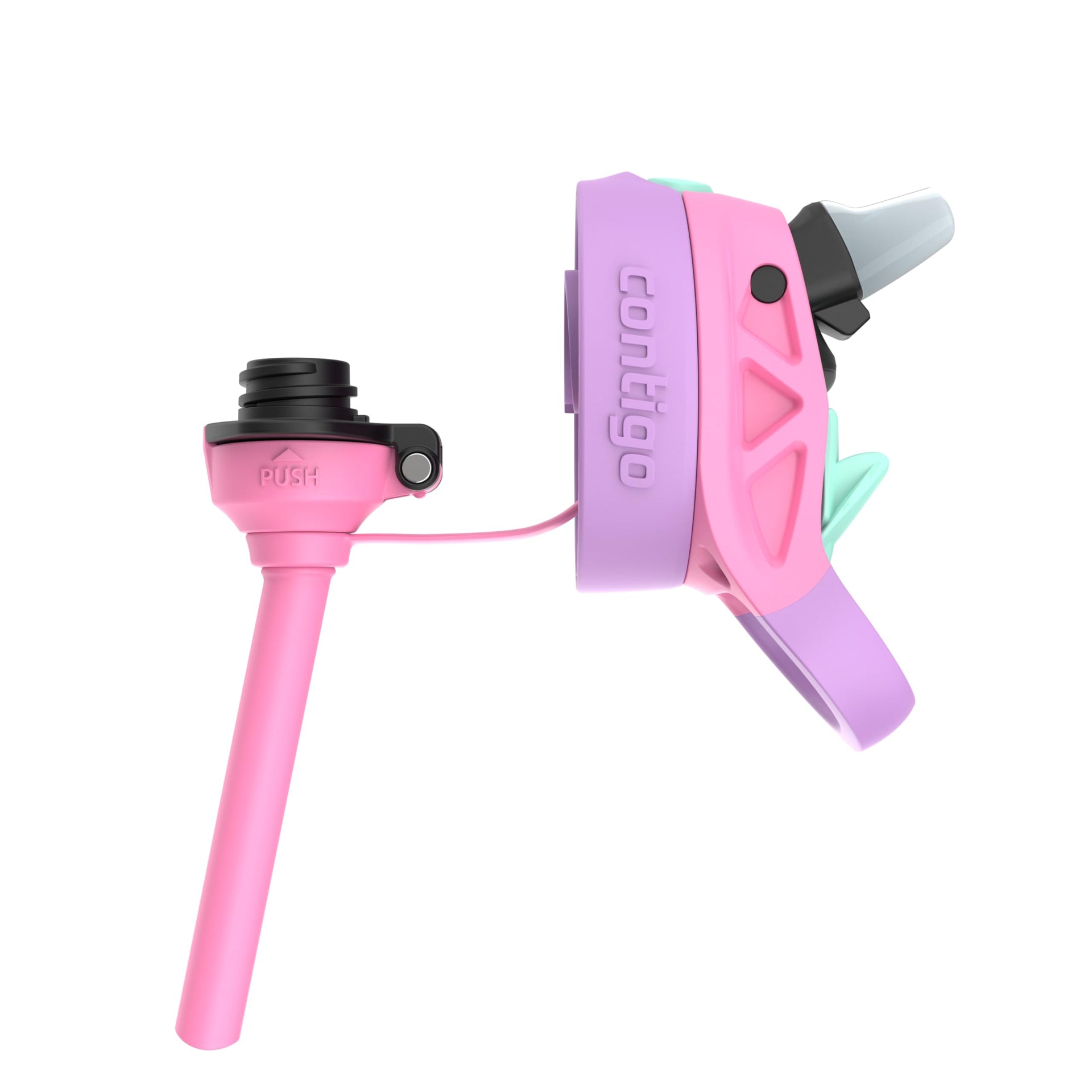 • Kids enjoy an easy one-handed drinking experience at the push of a button