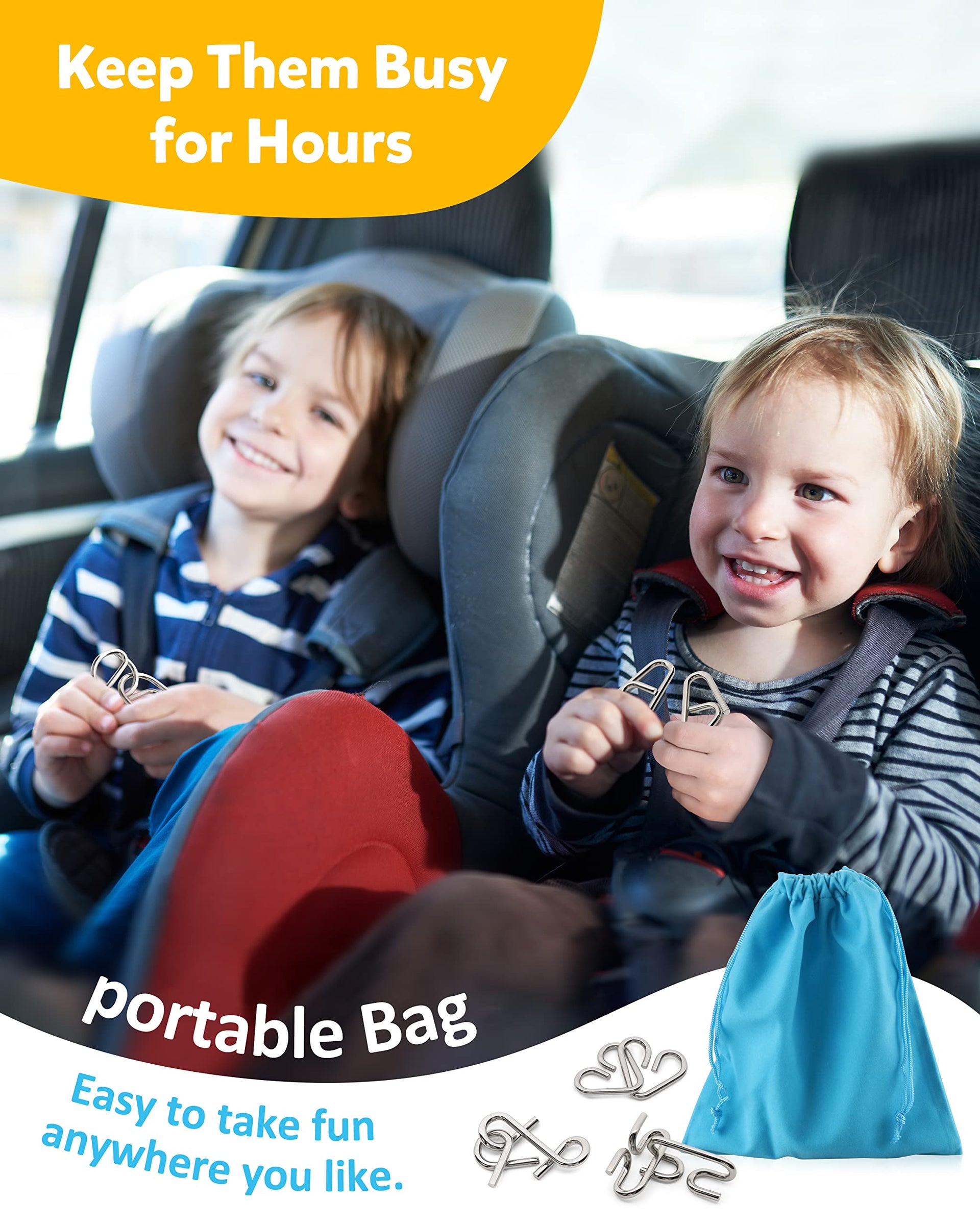 Coogam Metal Wire Puzzle Set – 16 Brain Teasers with Pouch, IQ Test Disentanglement, Interlock & Unlock Game, Magic Trick Toy for Kids & Adults