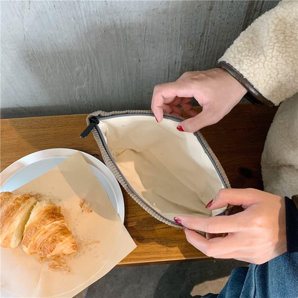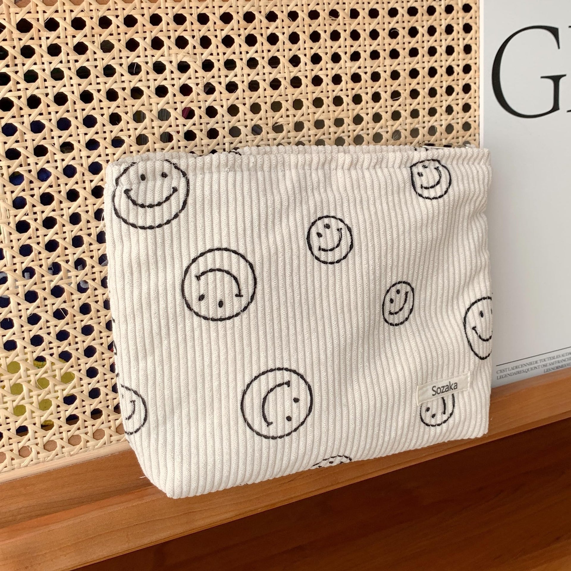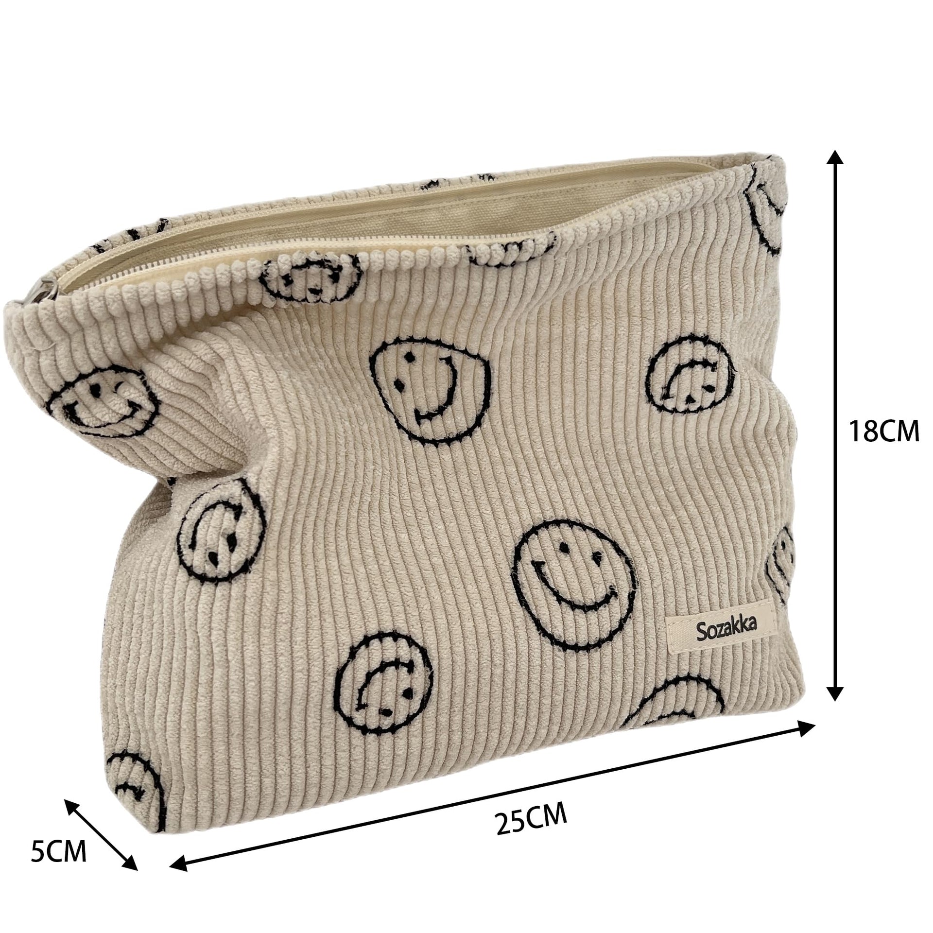 Corduroy Cosmetic Bag for Women – Aesthetic Makeup Organizer Pouch, Smile Dots Travel Storage Bag, Cute Handbag & Purse (Beige)
