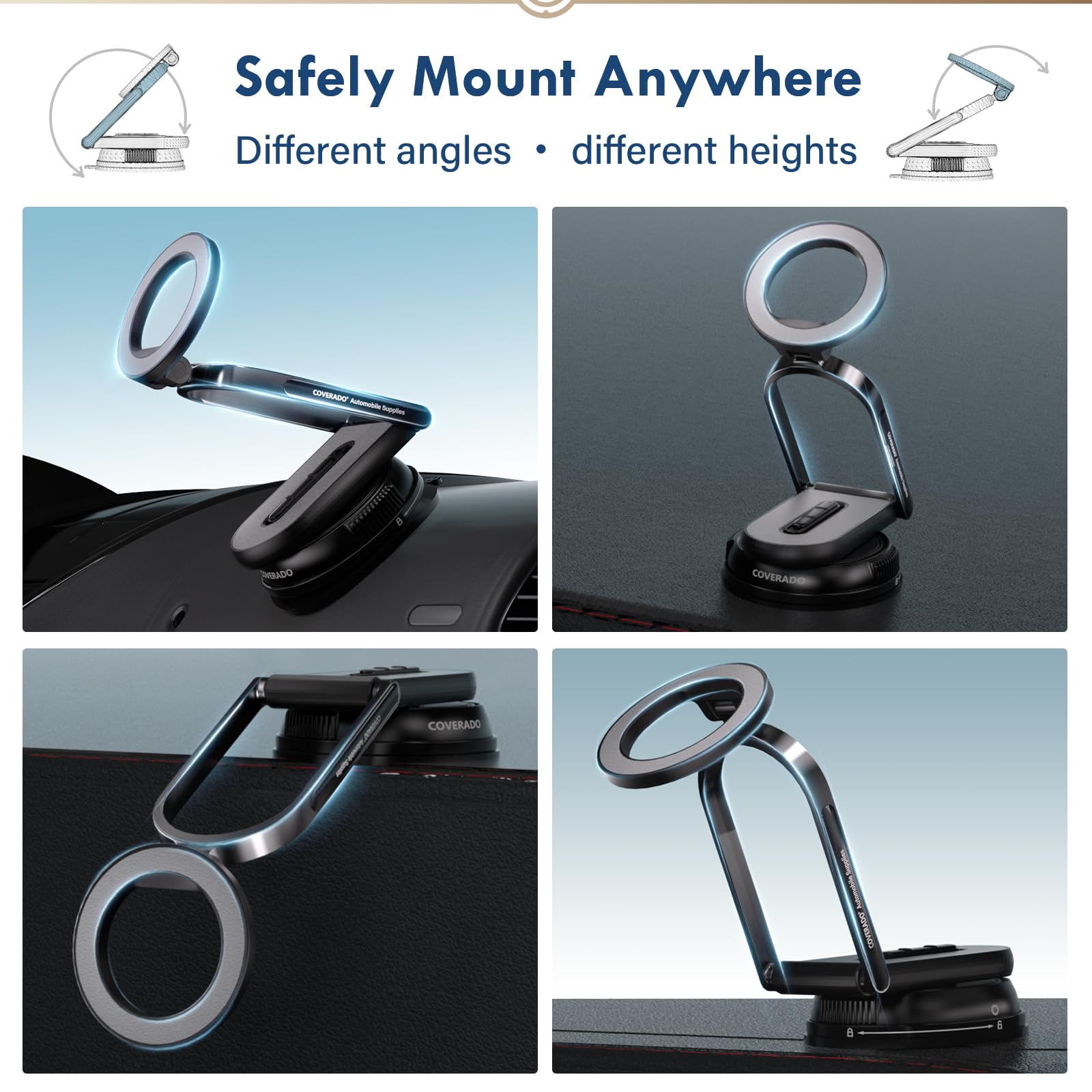 Coverado Magnetic Car Phone Holder, Vacuum Magnetic Phone Holder for Car, 360° Rotation Strong Magnet Car Phone Mount Dash Cell Phone Mount…