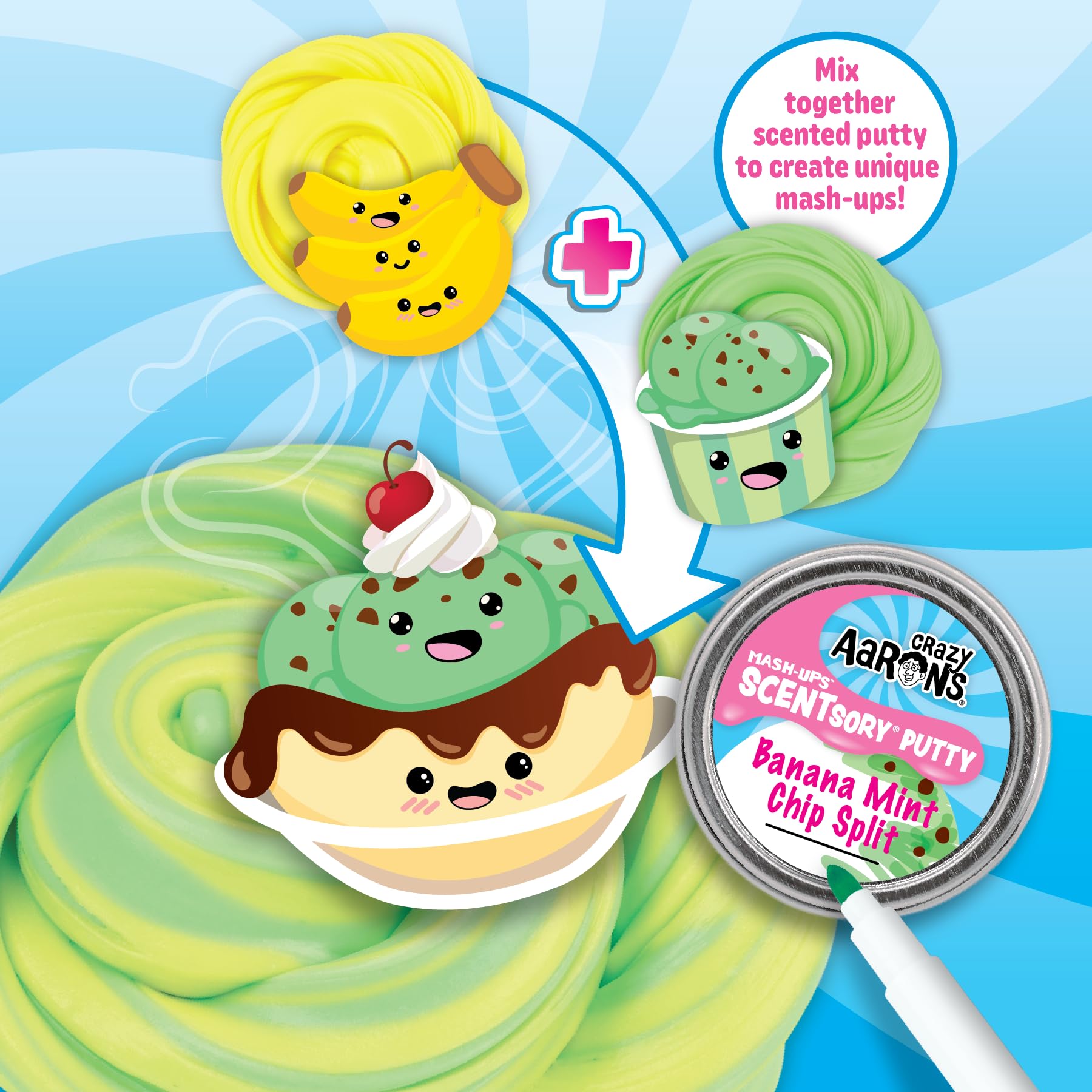 • Comes with 6 different scented putties including: Banana, Mocha, Cinnamon Bun, Mint Chip, Birthday Cake, and Mango Boba