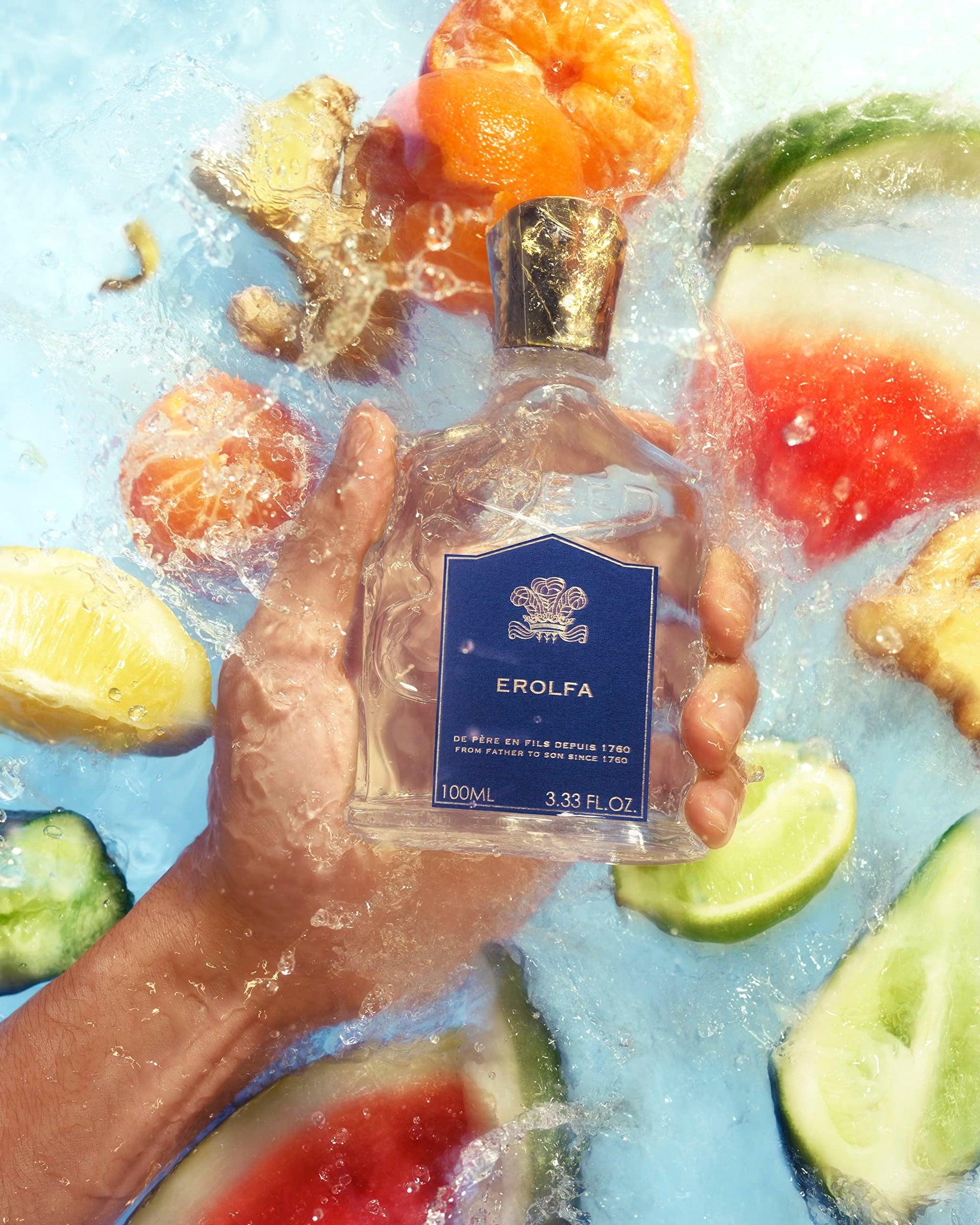 • This oceanic fragrance is an ode to Creed family memories of sailing the Mediterranean: invigorating seas, salty air, and citrus-scented breezes. The result is Erolfa, an uplifting scent destined to make memories all on its own