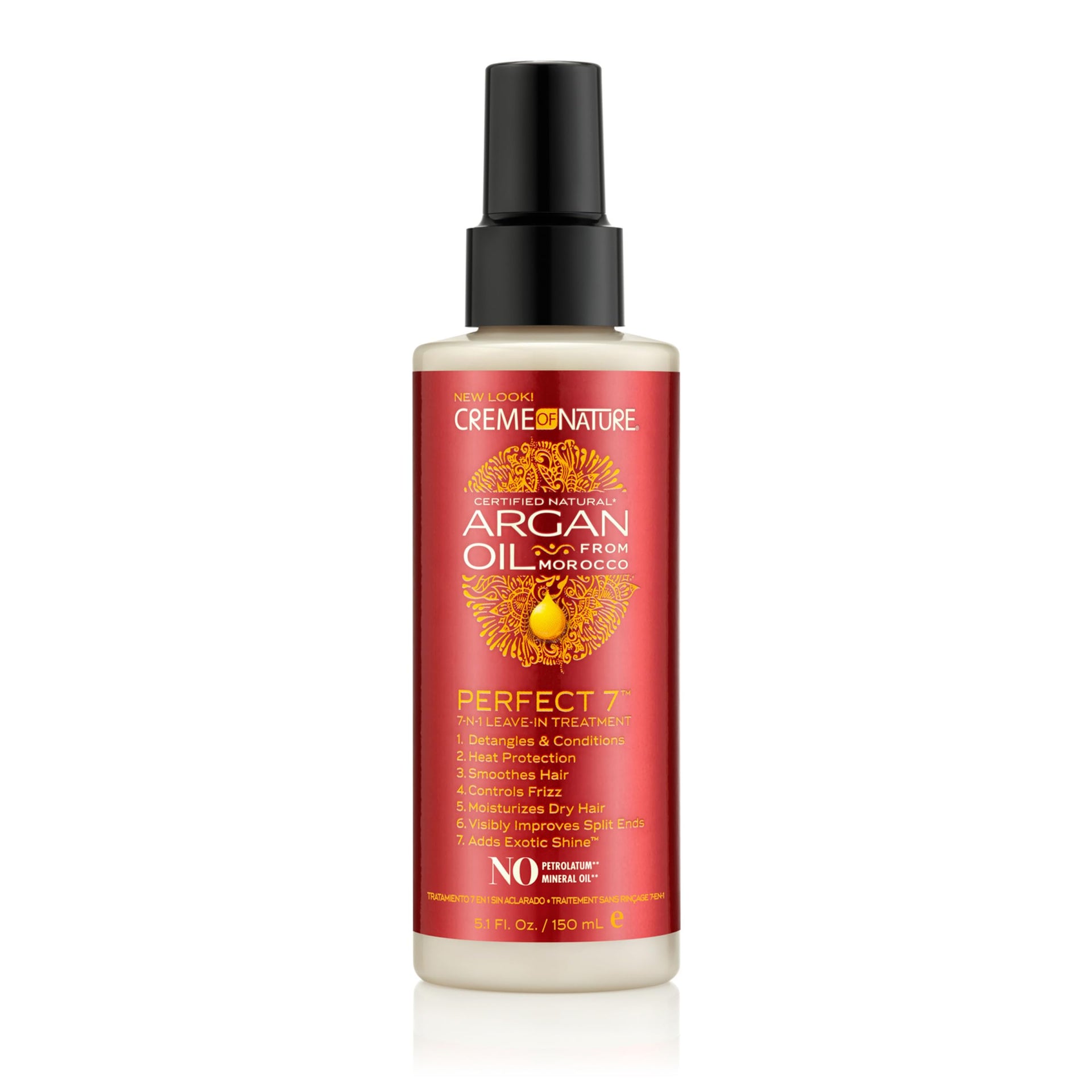Creme of Nature Argan Oil Perfect 7-in-1 Leave-in Curly Hair Treatment, Anti-Frizz, Heat Protection & Exotic Shine, Stocking Stuffer for Her, 5.1 Fl