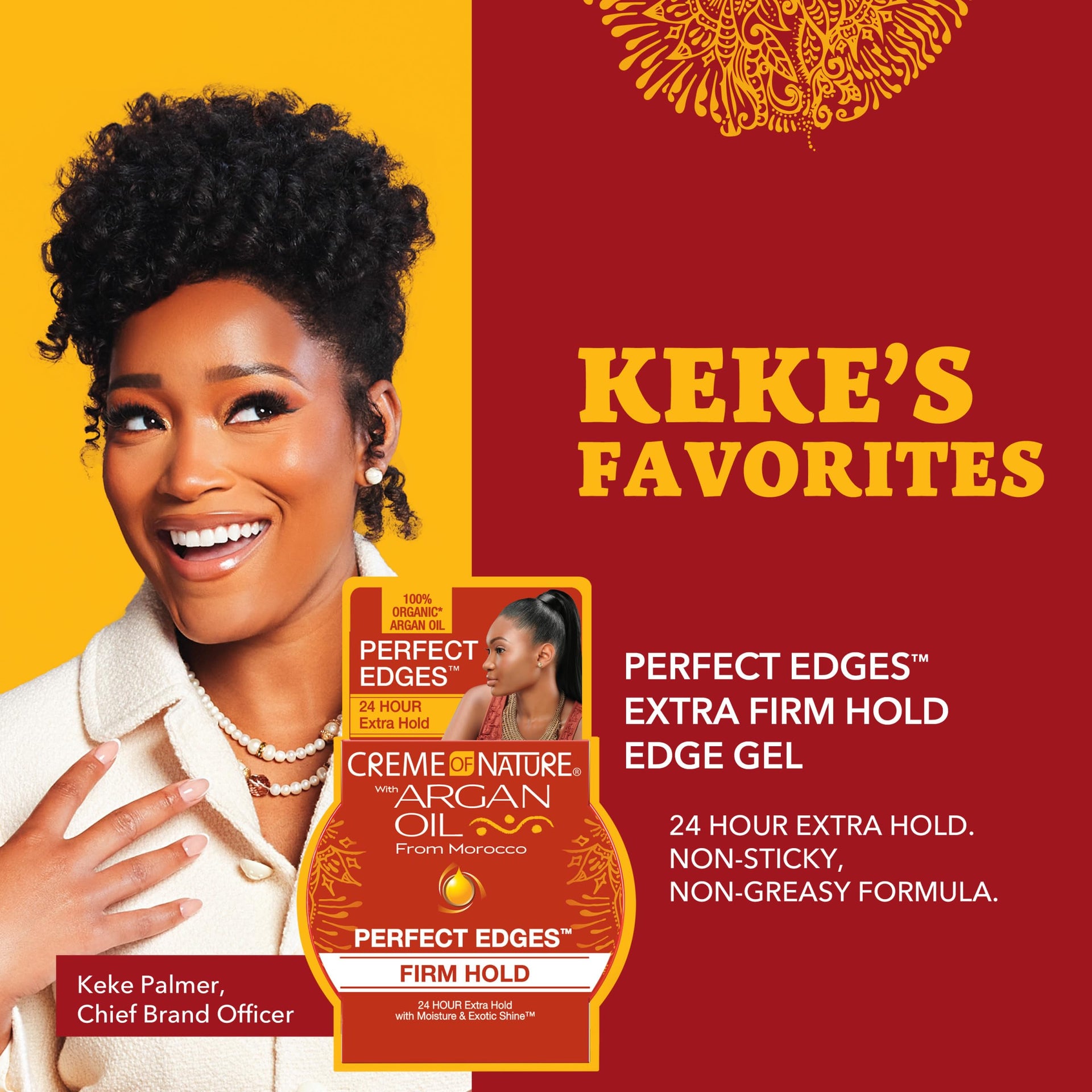 Creme of Nature Perfect Edges™ Extra Firm Hold Gel, 48-Hour Sleek Style Edge Control with 100% Moroccan Argan Oil, Stocking Stuffer for Her