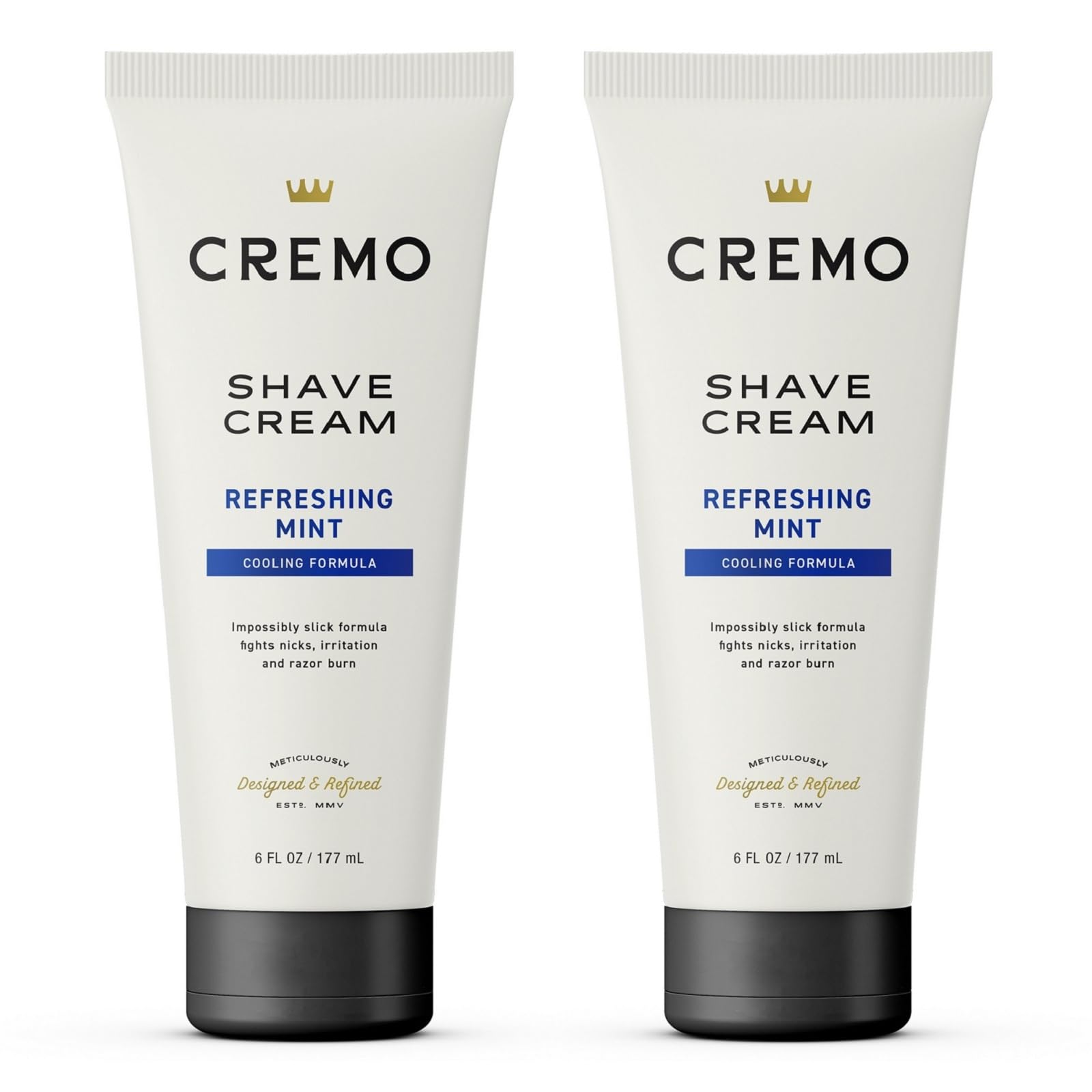 Cremo Barber Grade Cooling Shave Cream, Astonishingly Superior Ultra-Slick Shaving Cream Fights Nicks, Cuts And Razor Burn, 6 Fl Oz (2 Pack), WHITE