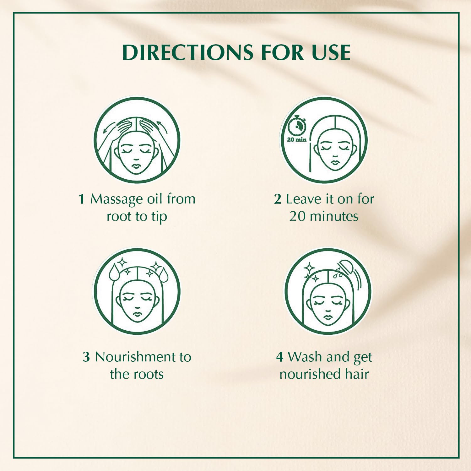 • Premium coconut hair oil enriched with henna, amla, lemon and five other trusted herbs