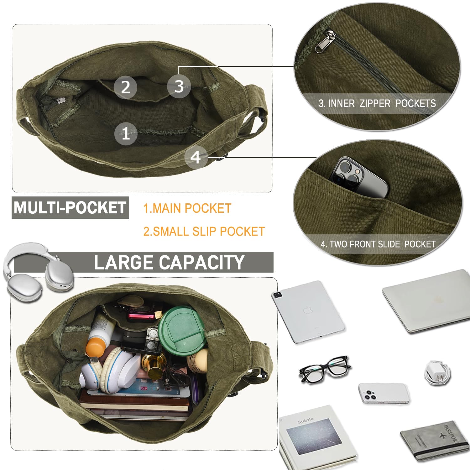 DAINAOTM Canvas Tote Bag Casual Hobo Crossbody Shoulder Bag for Women and Men Large Purse Messenger Bag Travel Work